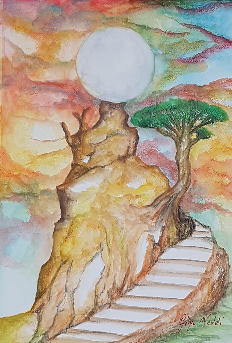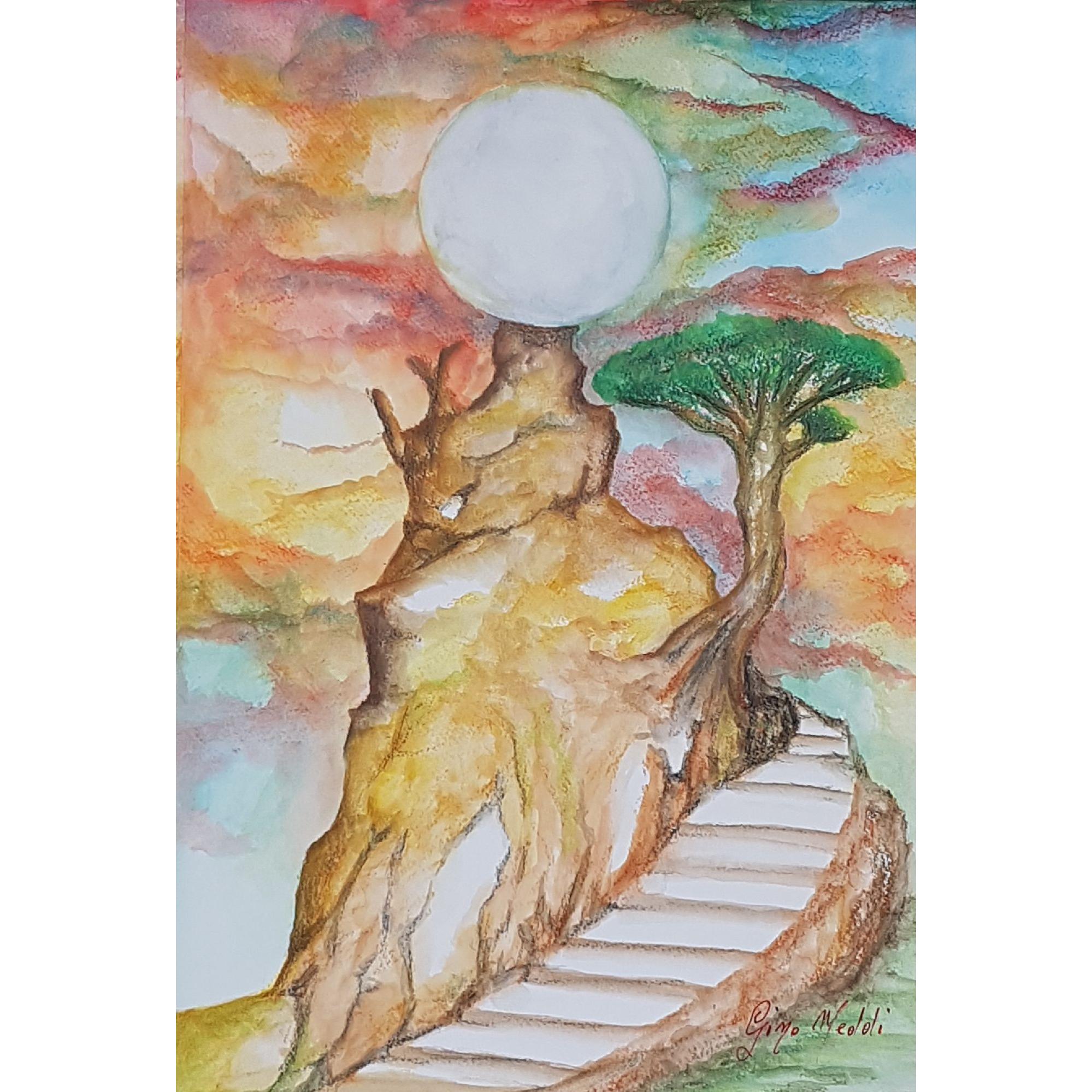 - Tecnica: pastelli a cera acquerellati
