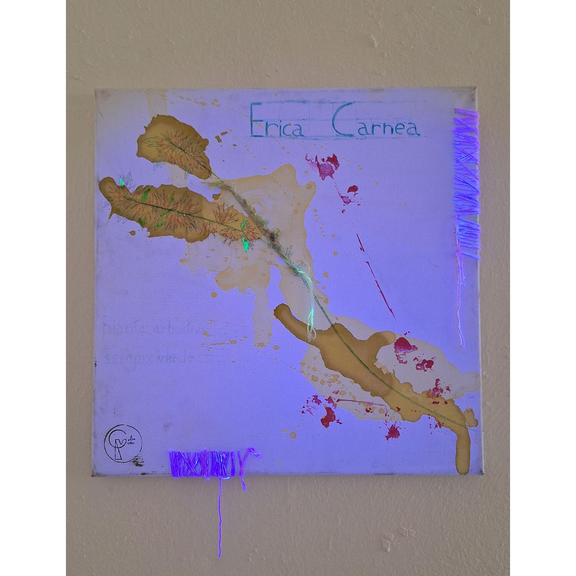 - Tecnica: Mista. Materiali chimici reattivi su tela.