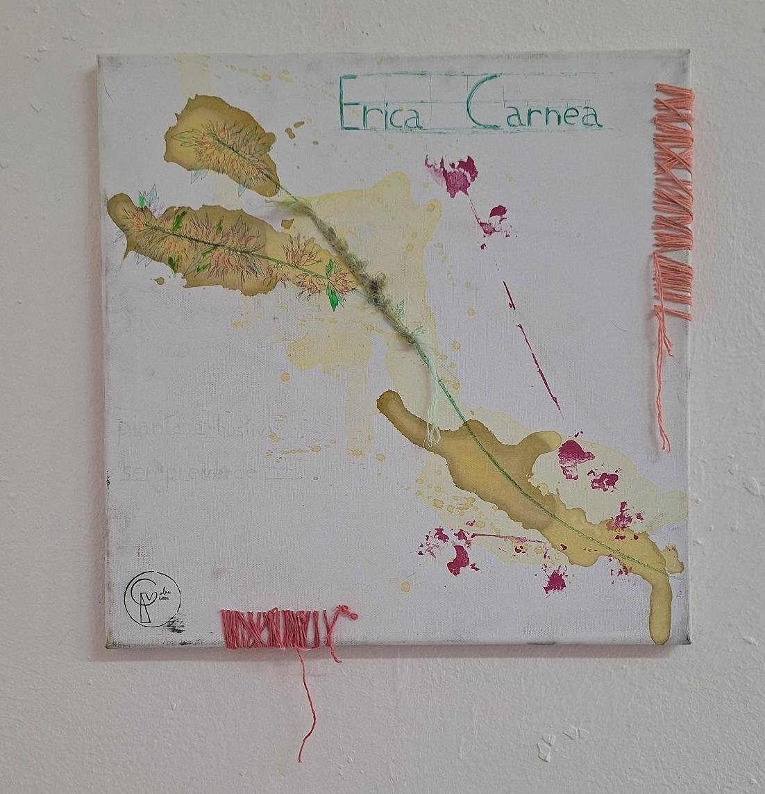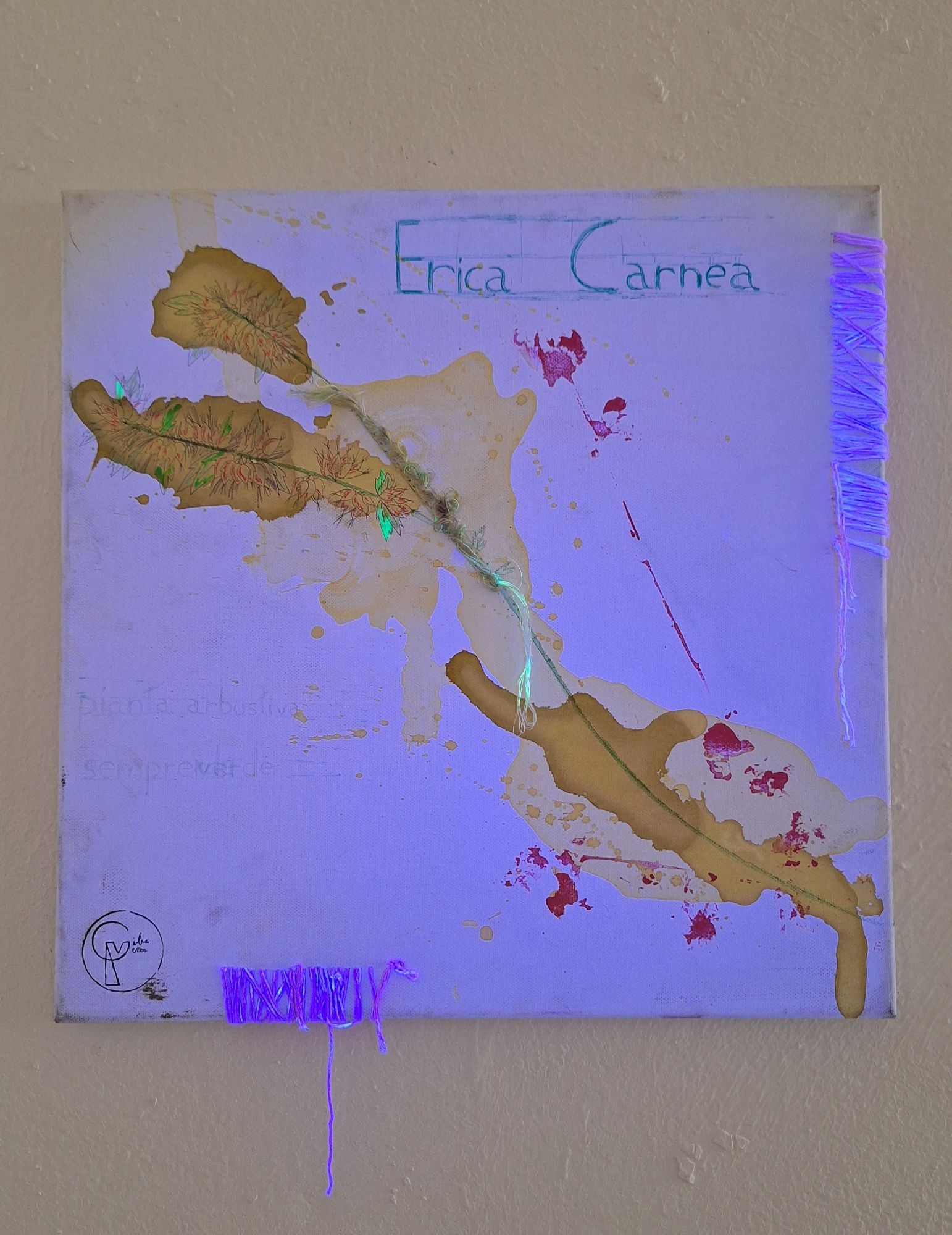 Illustrazione stilizzata di Erica Carnea,pianta autoctona biennese. Reattivo a ultravioletto e calore.