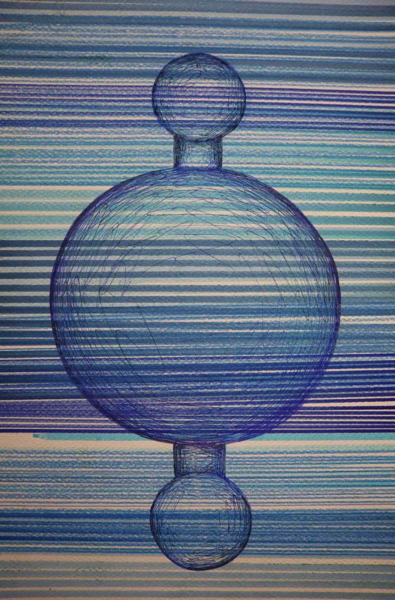 Illustrazione in formato A3 su carta 160 grammi di una molecola rappresentata con modello "ad asta e sfera". Le linee sullo sfondo sono ispirate alle analisi chimiche sugli spettri. Reattiva al calore