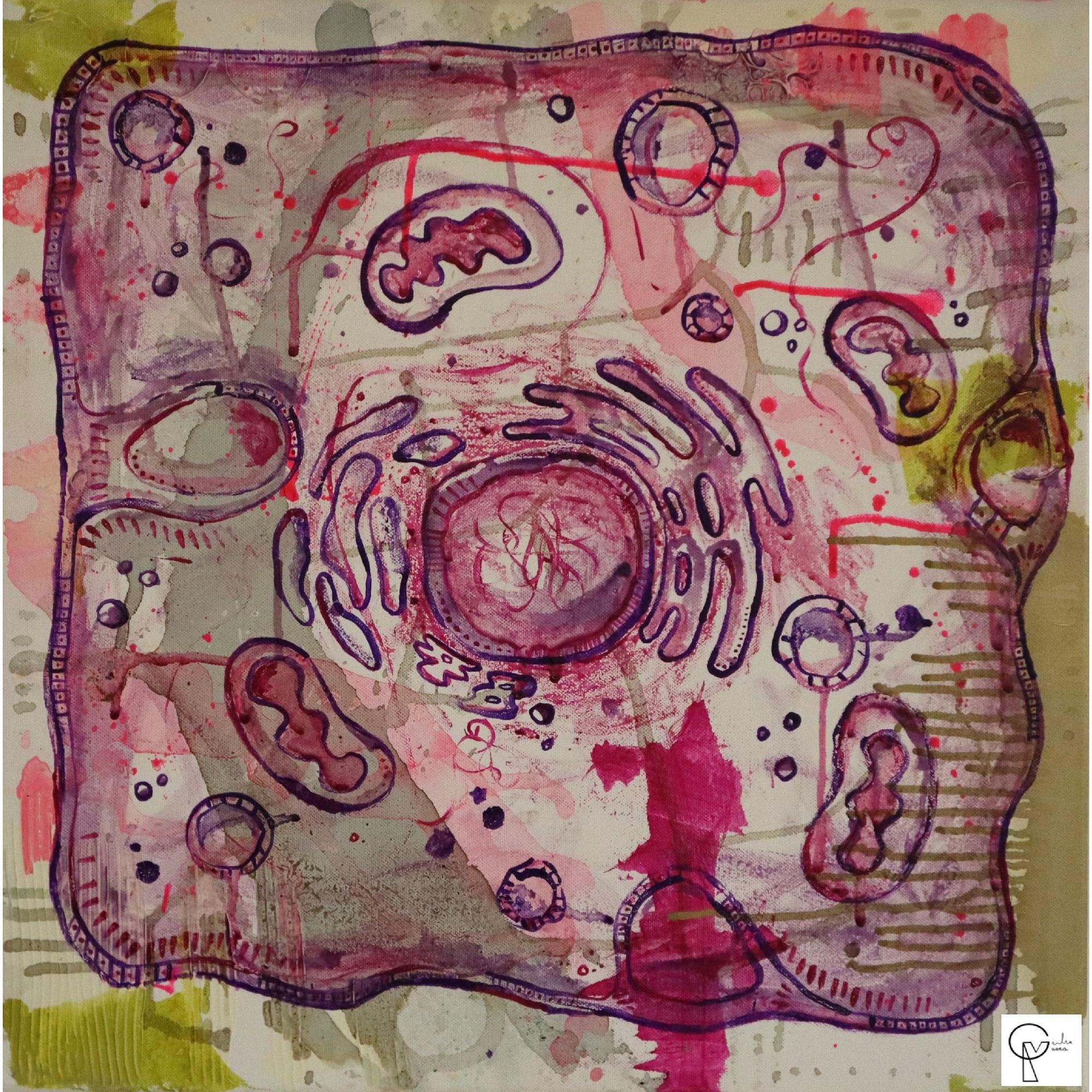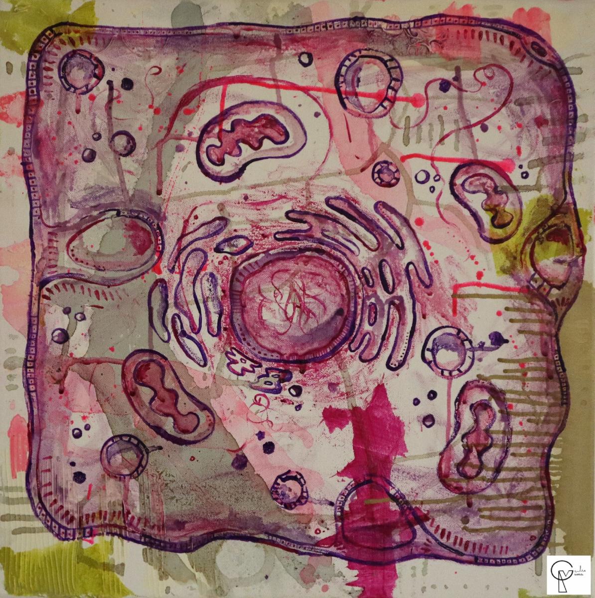 Rappresentazione di una cellula su tela. Reagisce al calore.