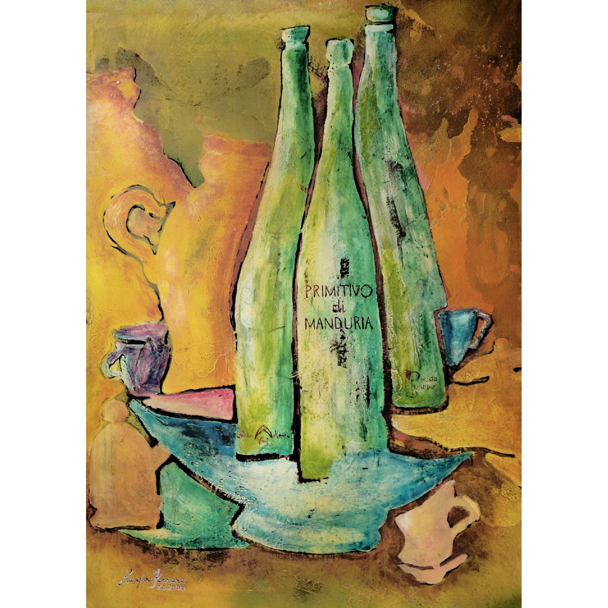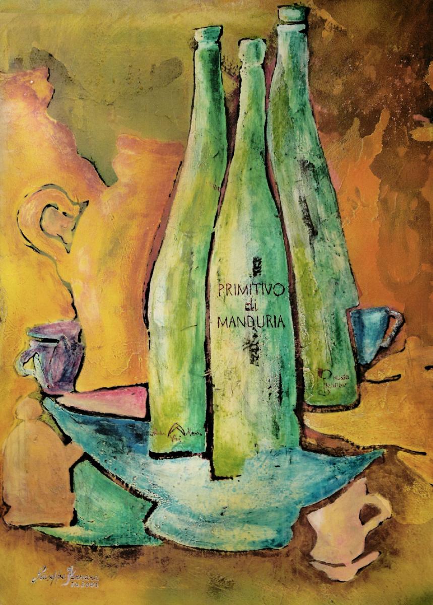 gruppo di bottiglie tra le quali una del vino Primitivo di Manduria (Taranto)