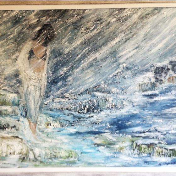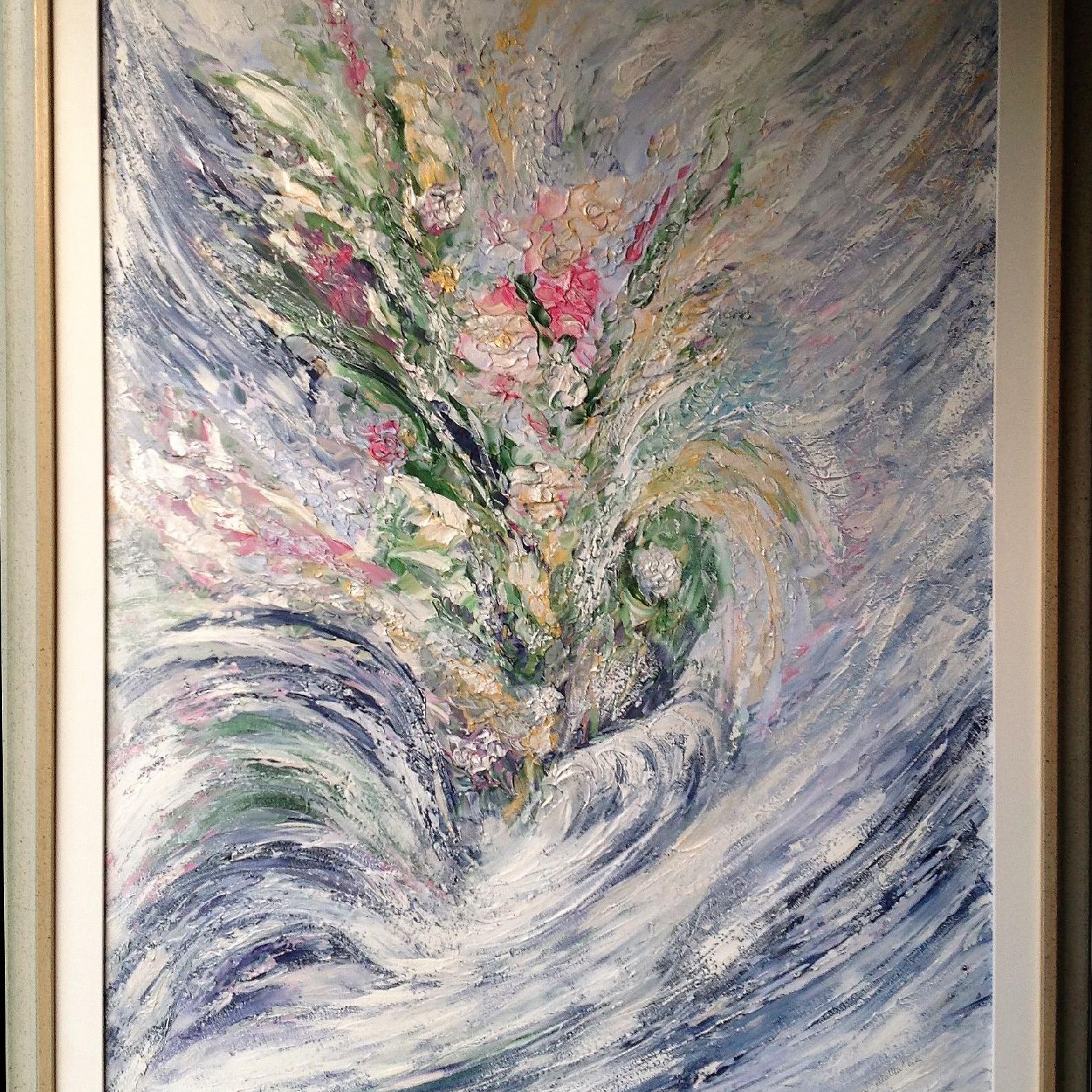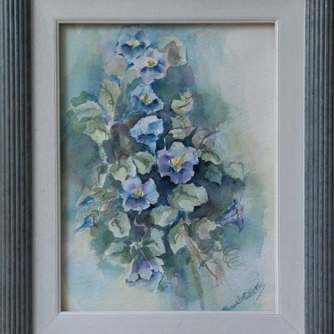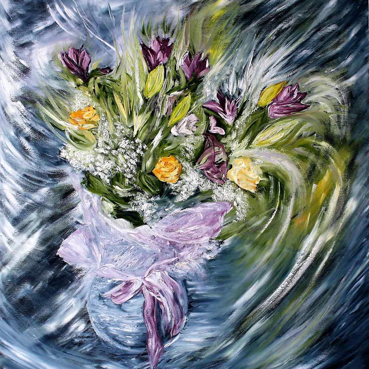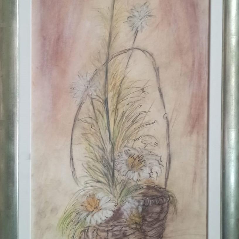 Cestino con fiori - China e pastelli su papiro 30x60_ 2024