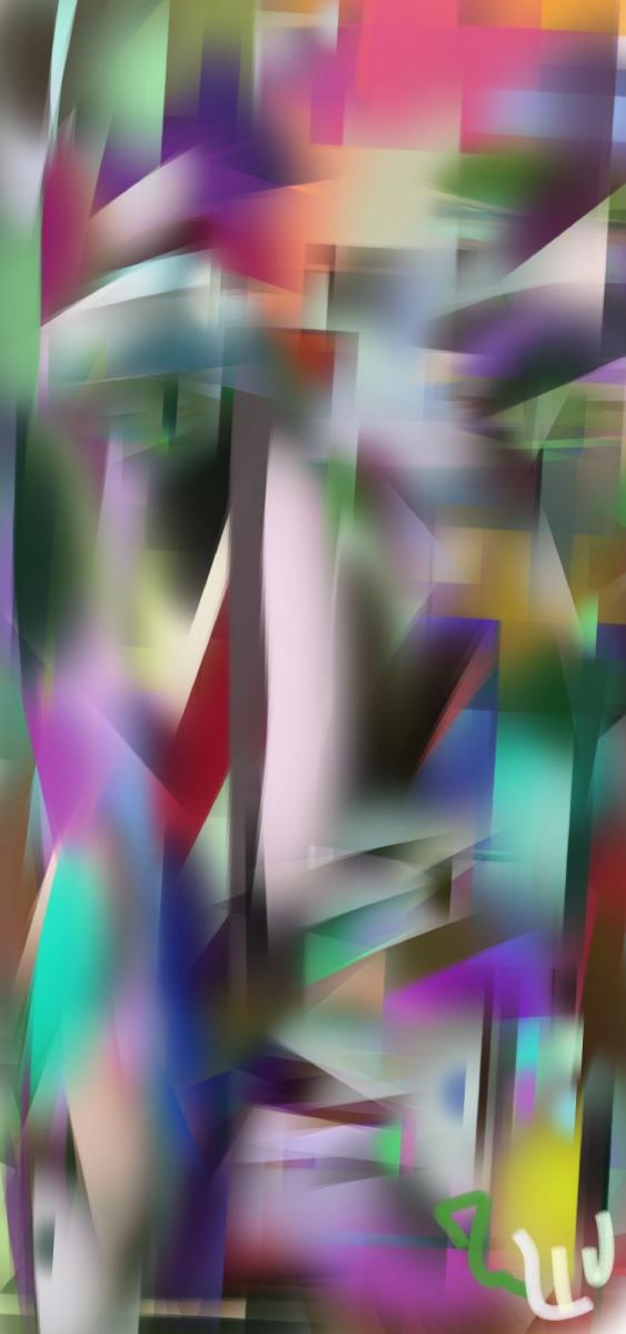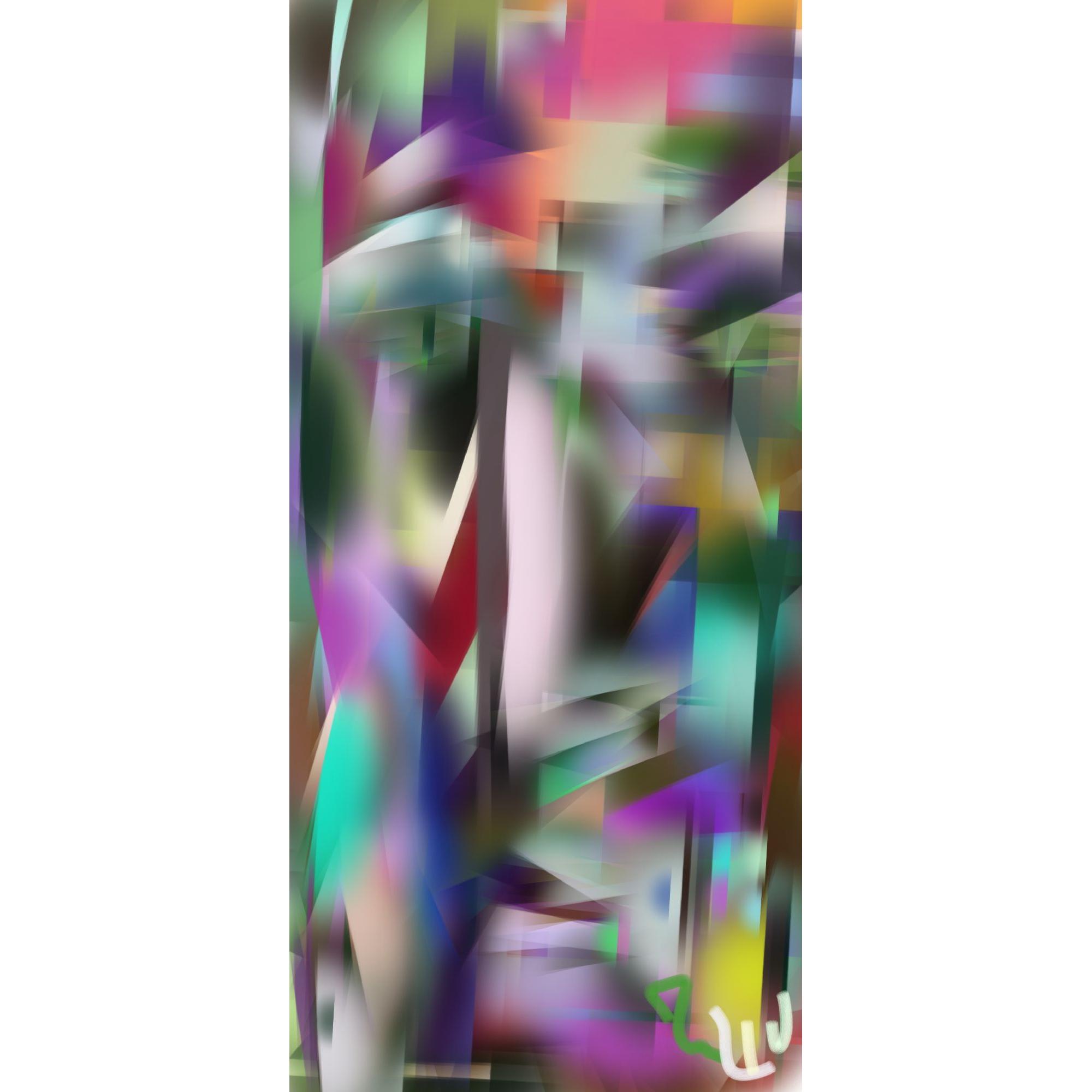 Opera digitale realizzata con app per disegno . Le mani creano le sfaccettature insieme ai colori per dare forma all'opera e all'immagine nel suo insieme.