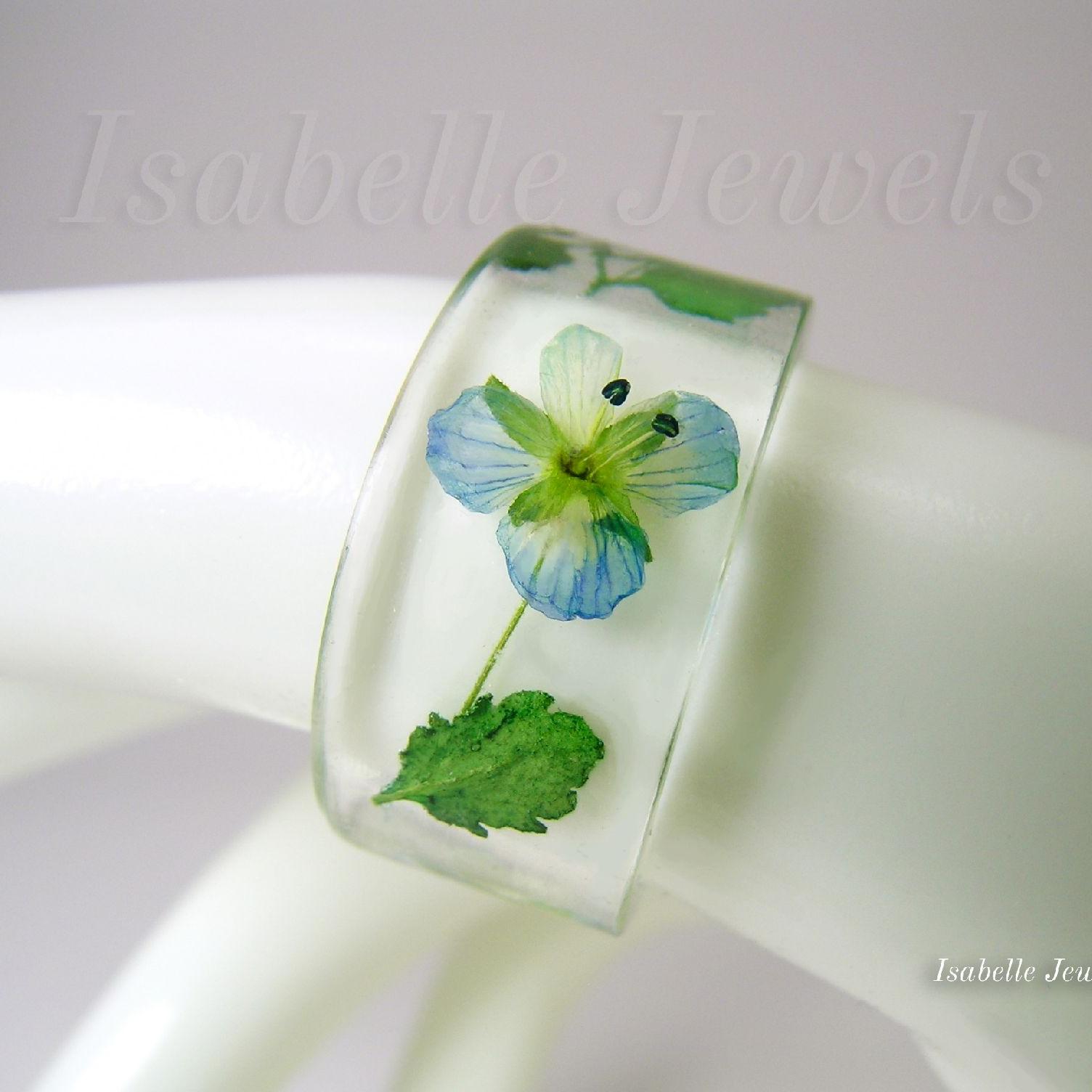 Anello con fiori veri "non ti scordar di me" cristallizzati nella resina. Gioielli artigianali