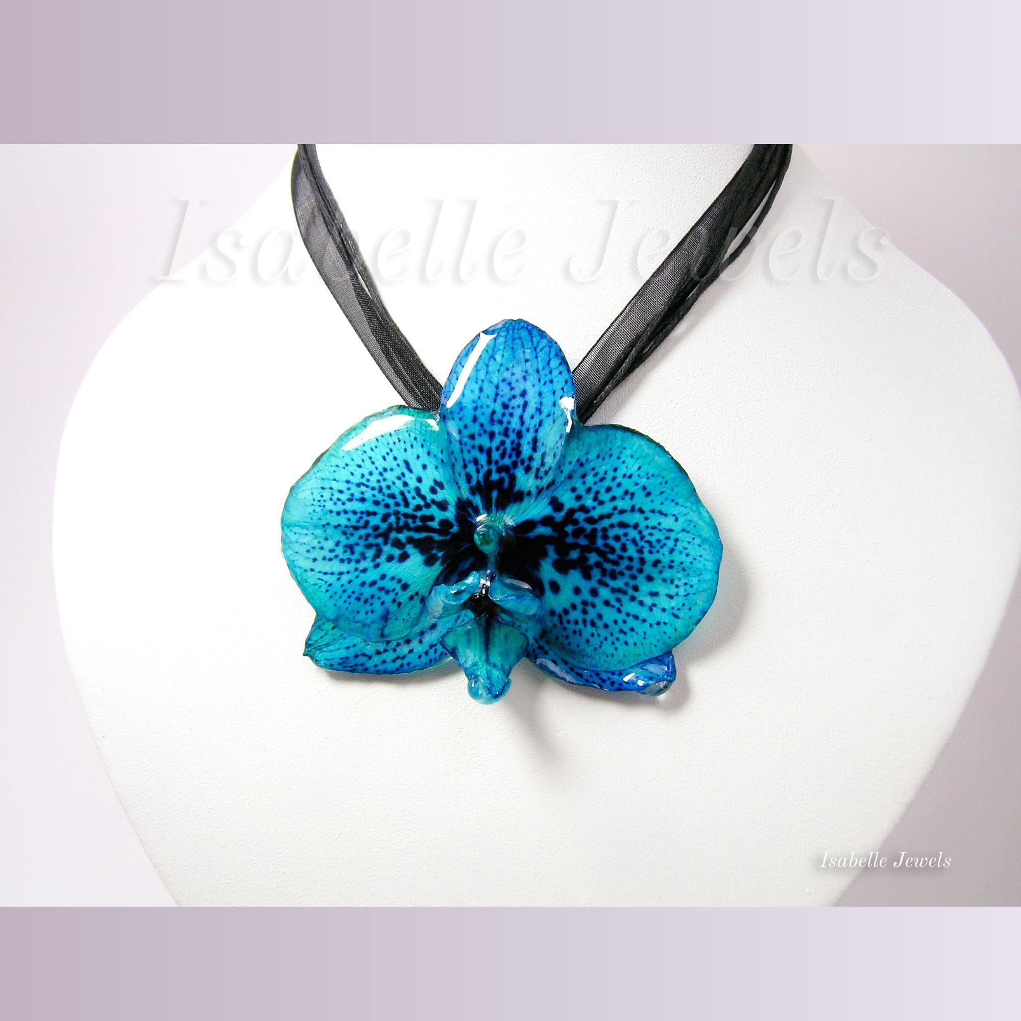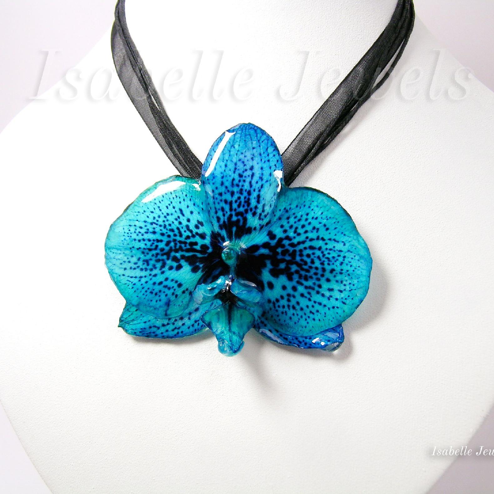 Orchidea blu, ciondoli con fiori veri e resina