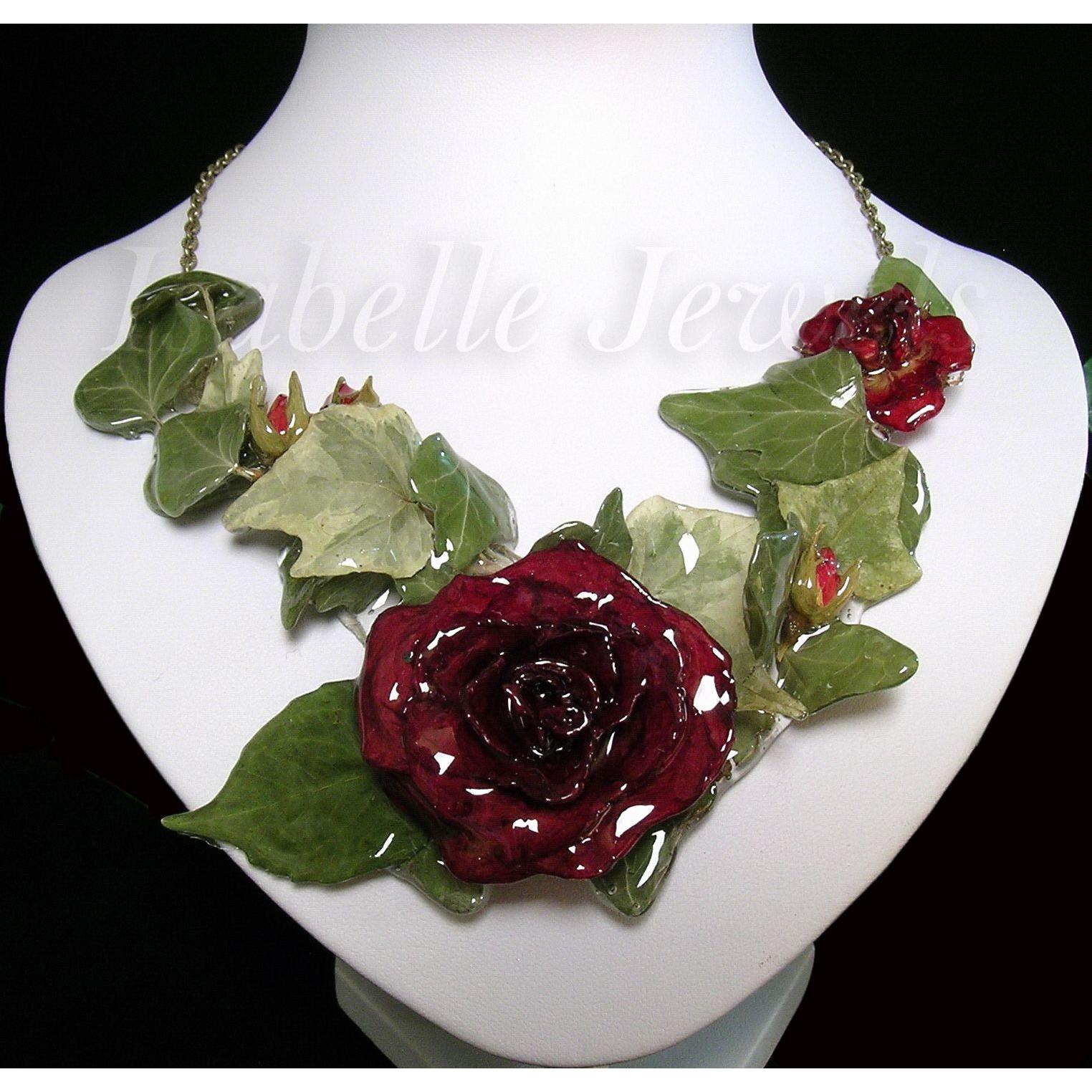 Collana girocollo donna realizzata a mano con fiori veri, rose naturali vetrificate con foglie di edera edera. Handmade real roses necklace - Gioielli artigianali in resina epossidica con fiori veri, naturali, ed elementi botanici. Handmade real flowers, epoxy resin jewelry - MI TROVI ANCHE SU YouTube : @isabellejewels