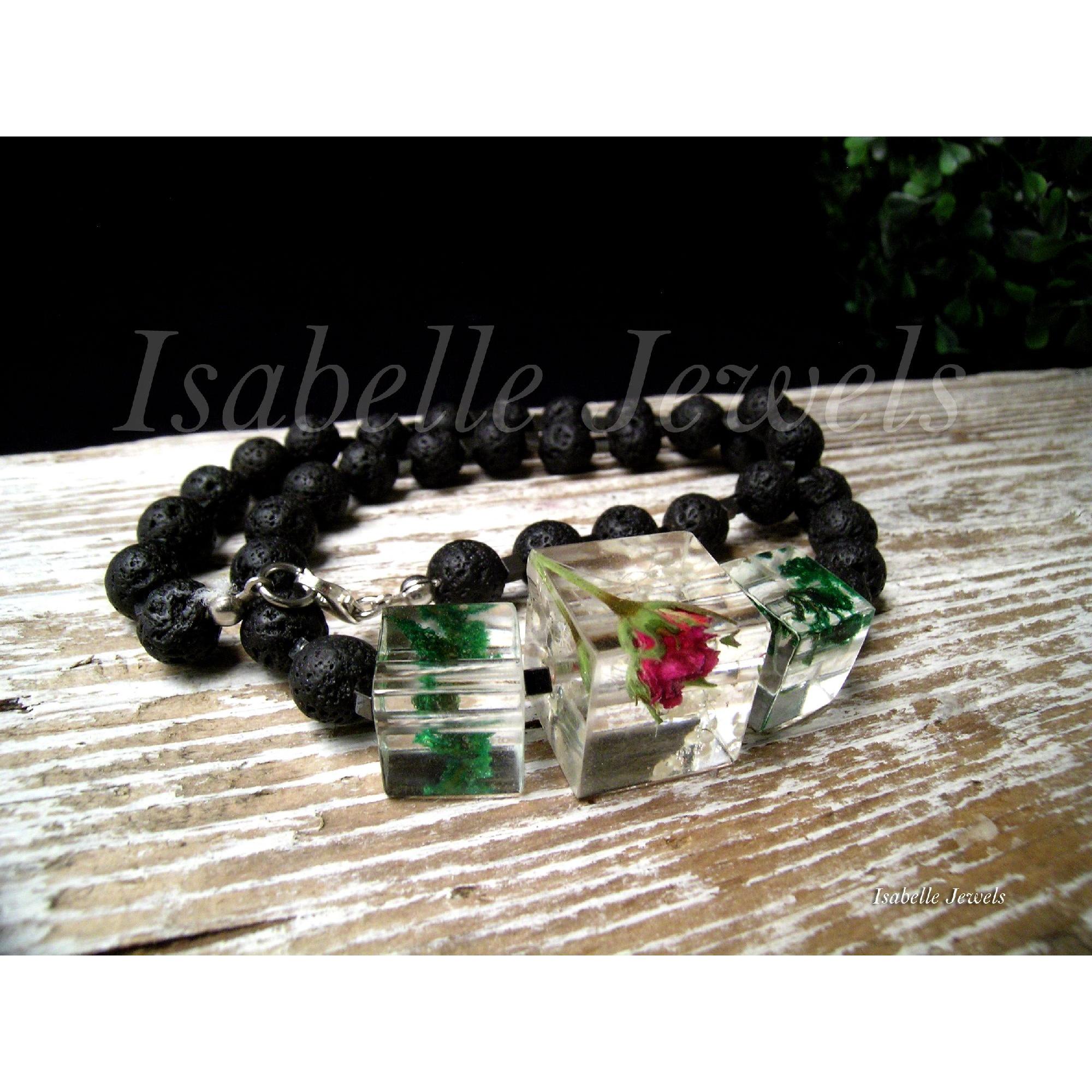 Collana girocollo donna realizzata con bocciolo di rosa, fiori bianchi e muschio in resina epossidica. Montatura in pietra lavica intervallata da ematite, minuteria in argento 925. Handmade resin real rose, moss necklace. Botanical sterling silver necklace - Gioielli artigianali in resina epossidica, creazioni con fiori veri, naturali, ed elementi botanici. Handmade real flowers, epoxy resin jewelry - MI TROVI ANCHE SU YouTube : @isabellejewels