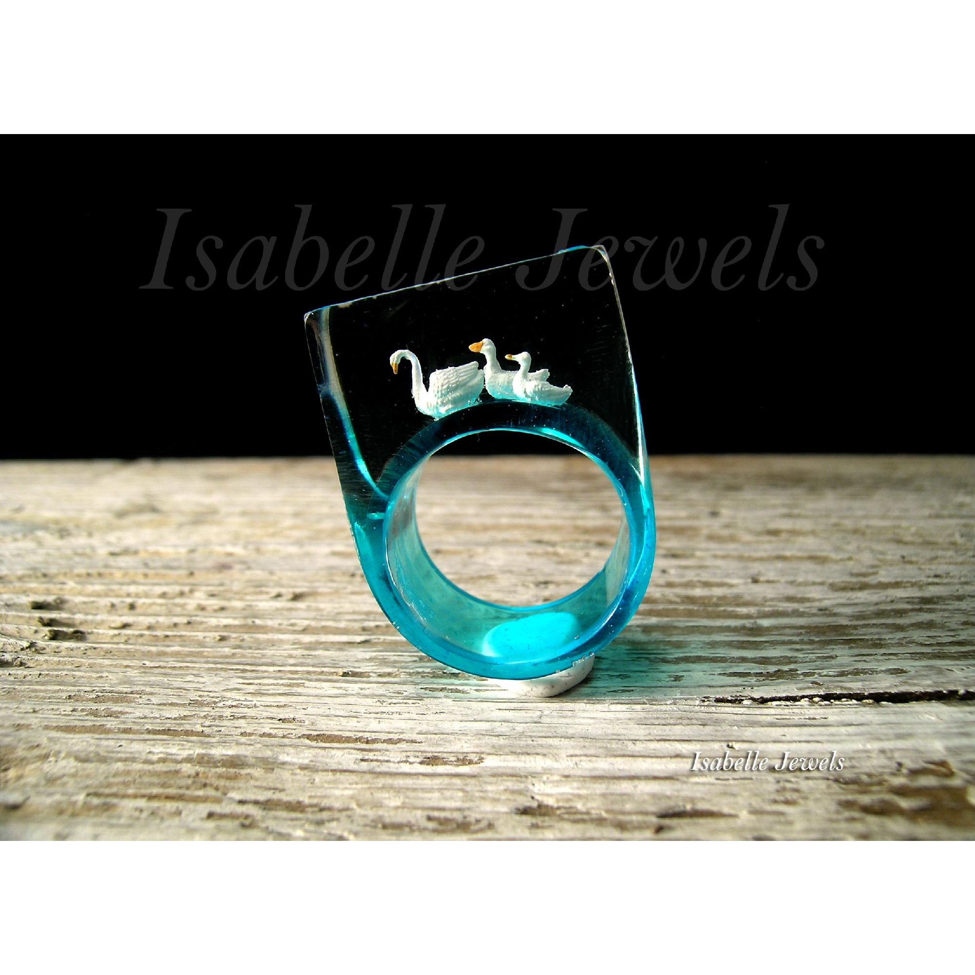 Anello realizzato a mano in resina con miniature di cigni, epoxy resin swan ring. - Gioielli artigianali in resina epossidica .Handmade epoxy resin jewelry - MI TROVI ANCHE SU YouTube : @isabellejewels