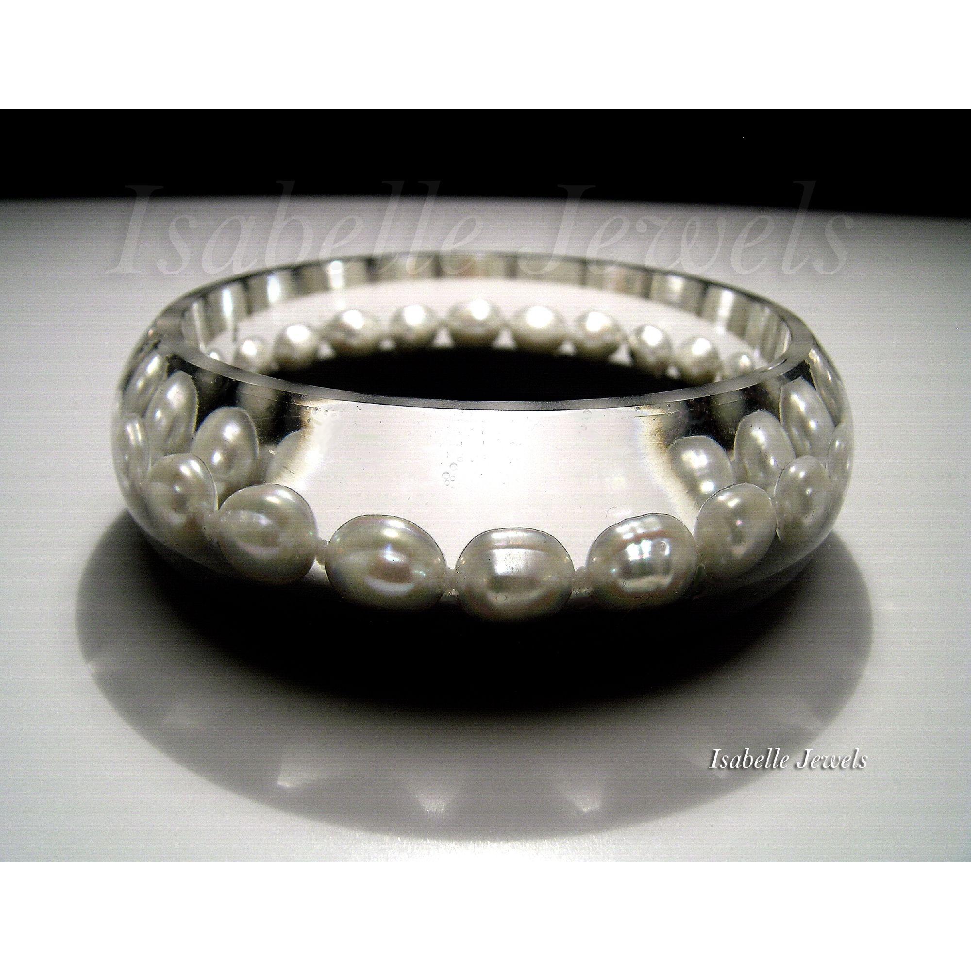 Bracciale con perle naturali inglobate nella resina epossidica, creazioni artistiche. Handmade natural pearls, epoxy resin bracelet