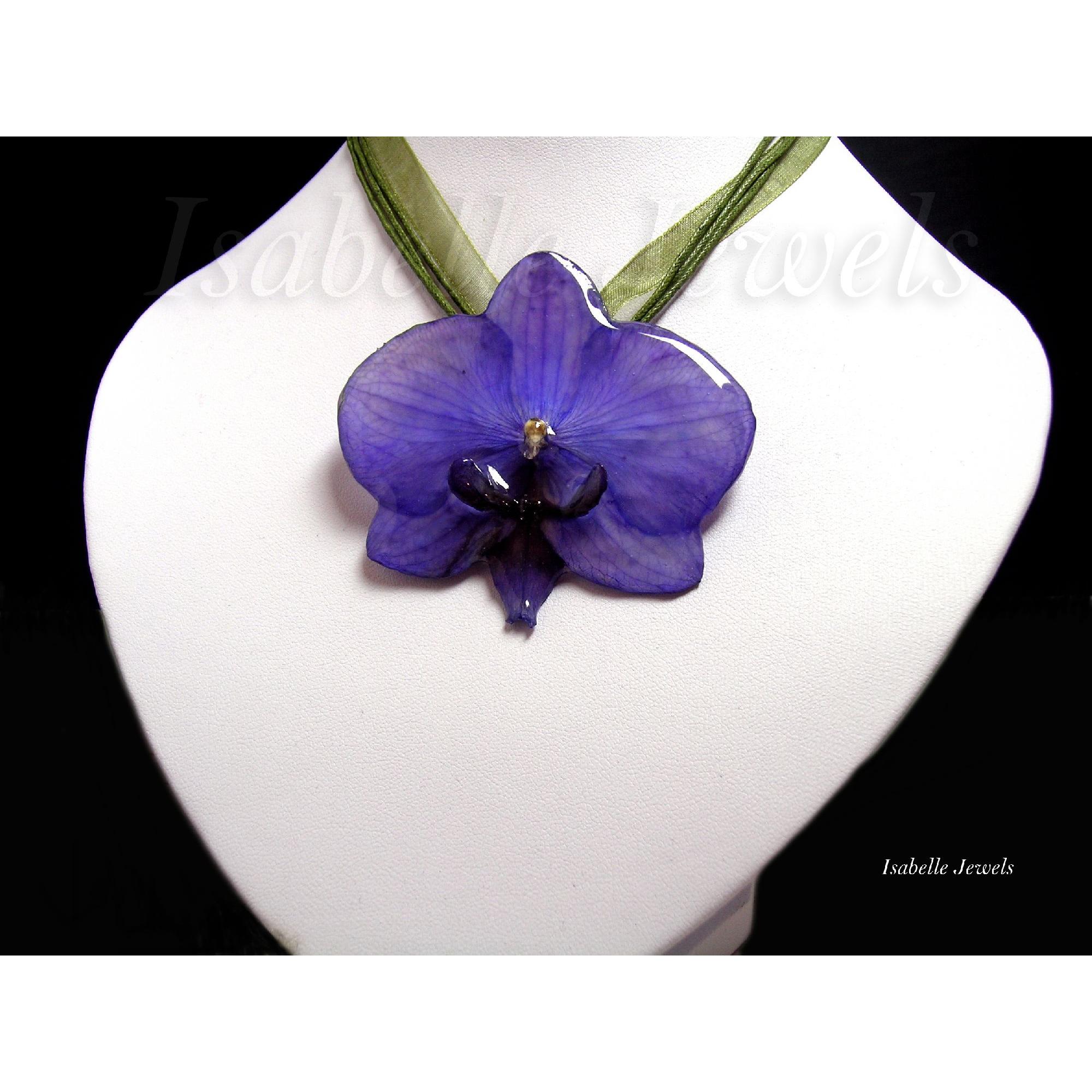 Orchidea phalaenopsis viola vetrificata con la resina. Collana con vera orchidea, Real orchid necklace. Gioielli artigianali, Creazioni in resina.