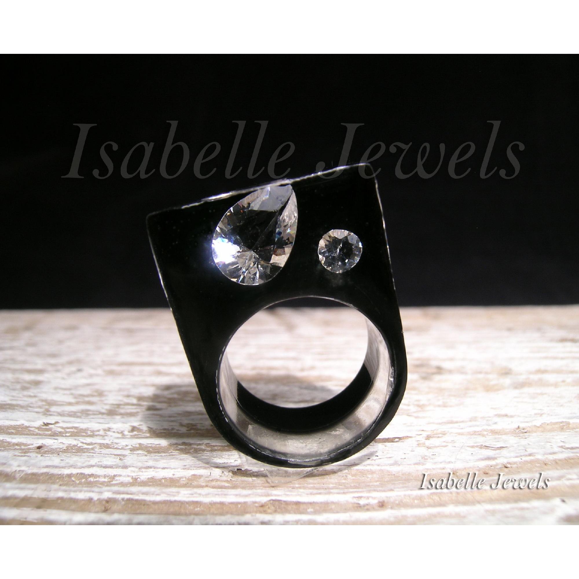 ~ Anello realizzato in resina trasparente e resina nera con zirconi incastonati.