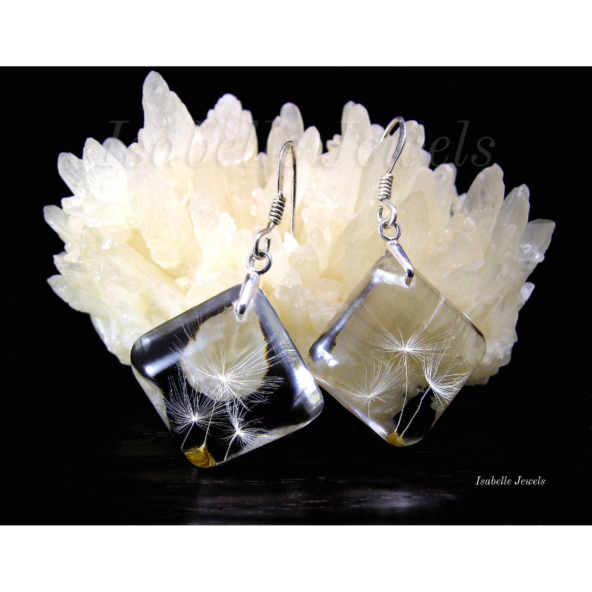 Orecchini pendenti particolari, realizzati con semi di soffioni custoditi nella resina