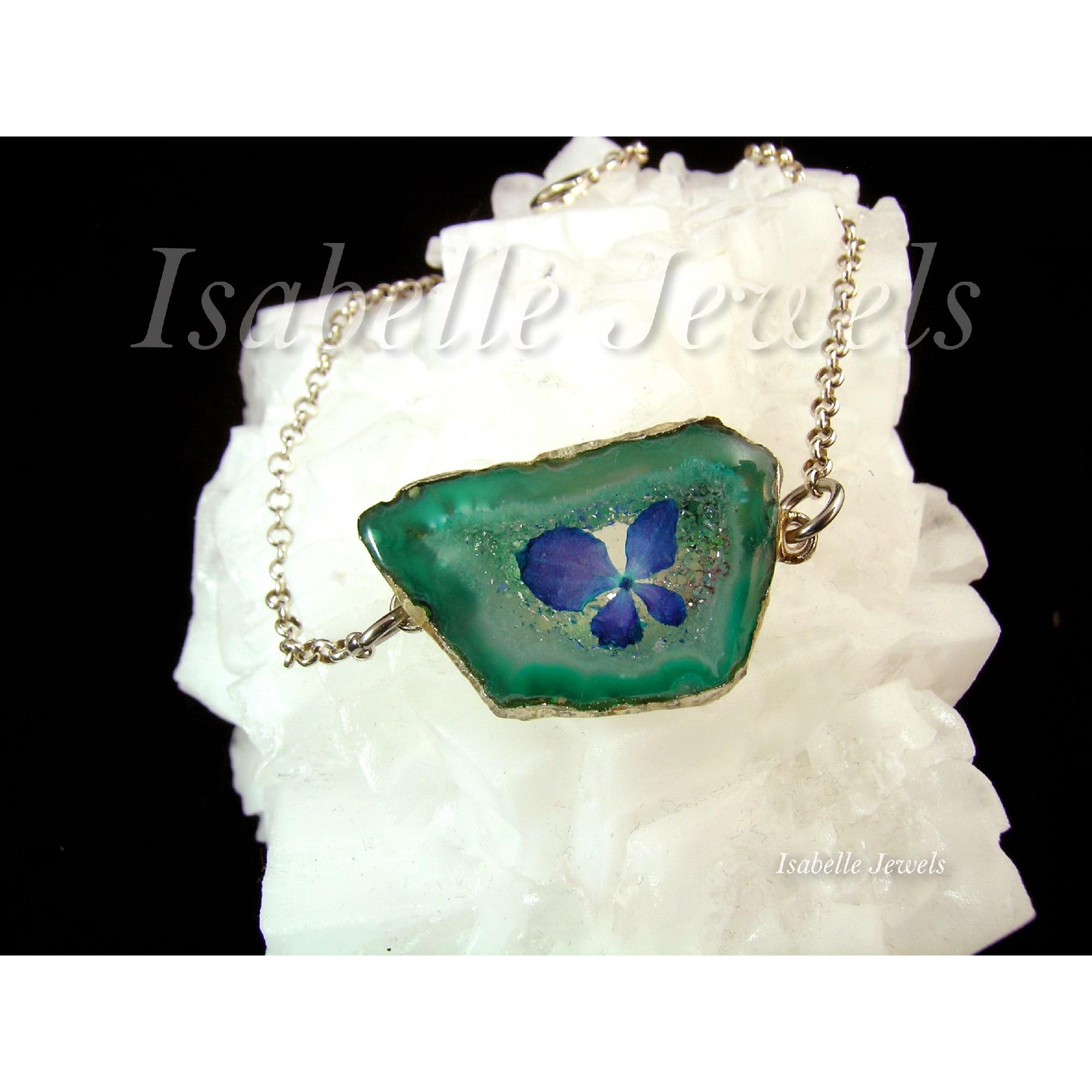 ~ Bracciale realizzato con un fiore di ortensia blu, incastonato nella pietra naturale.