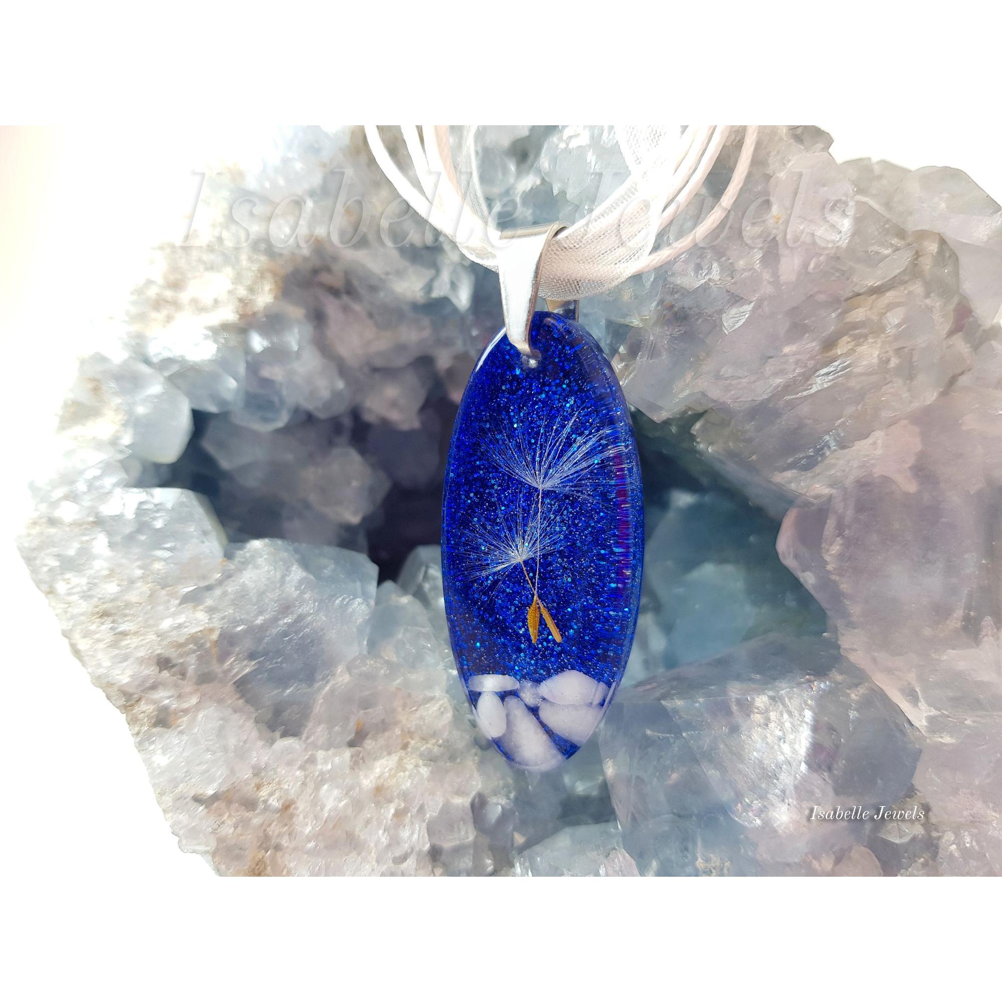 di marmo, custoditi nella la resina. Handmade dandelion, epoxy resin necklace