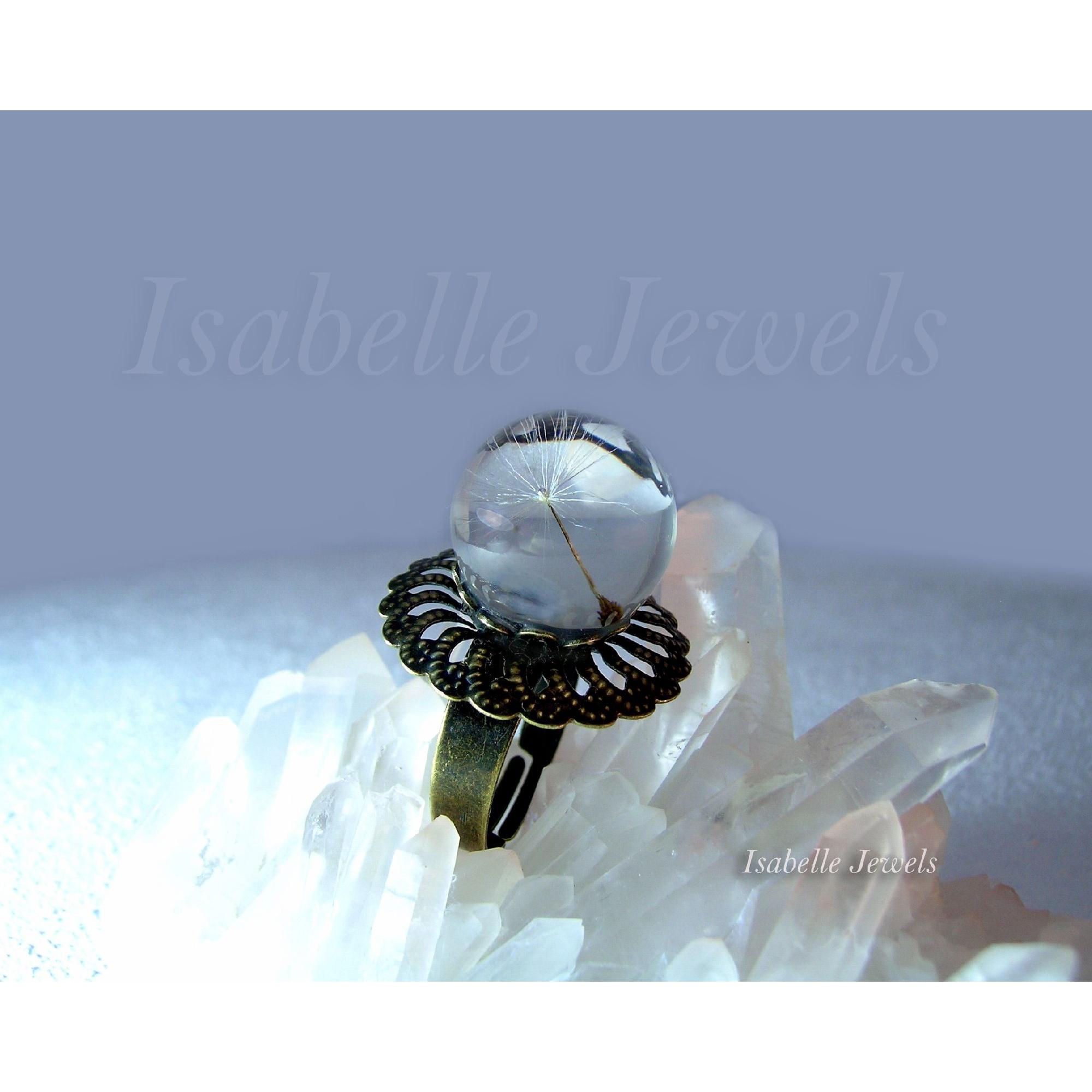 Anello in resina con dente di leone, seme di soffione cristallizzato. Resin ring with dandelion seed