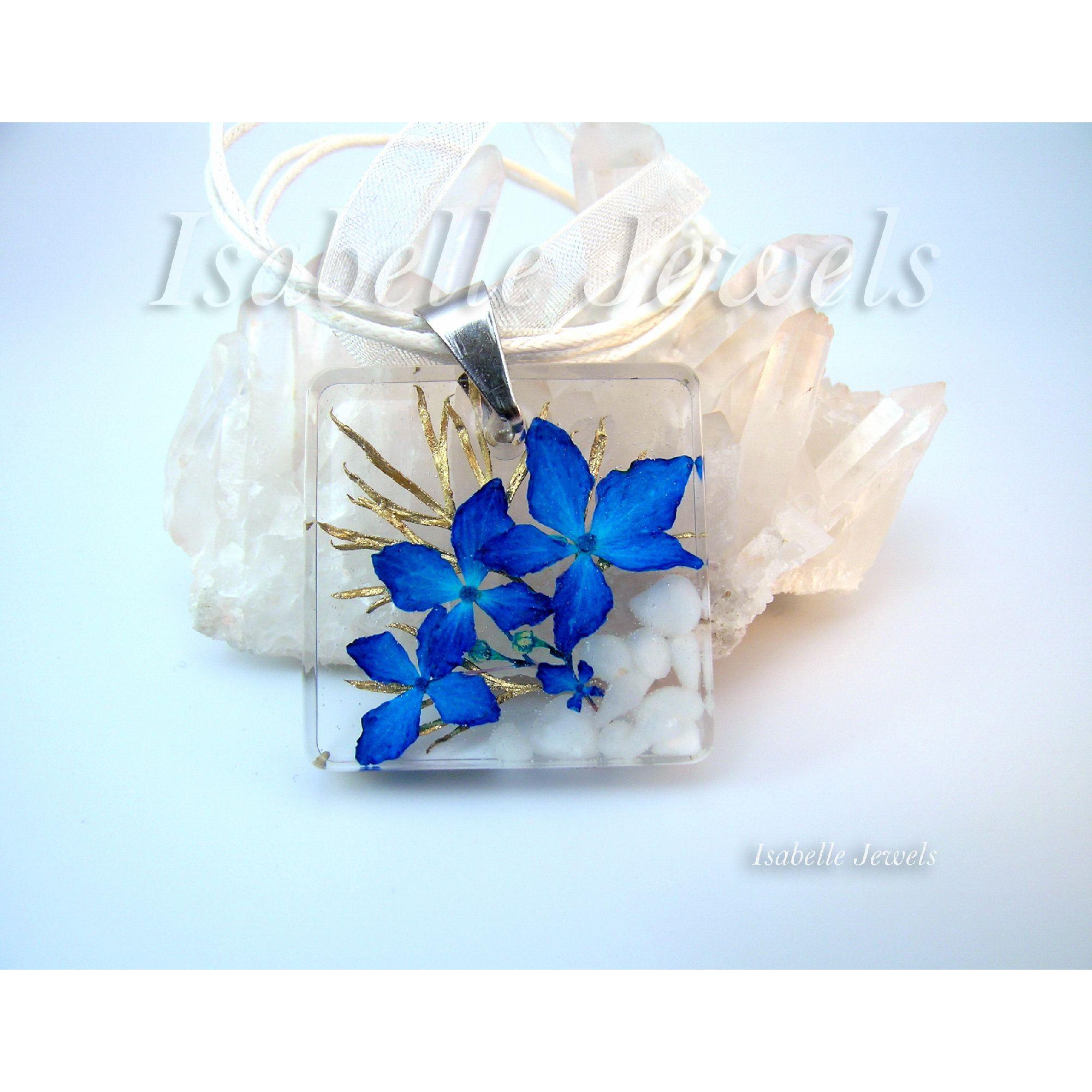 Collana con fiori di Ortensia Blu, cristallizzati nella resina epossidica