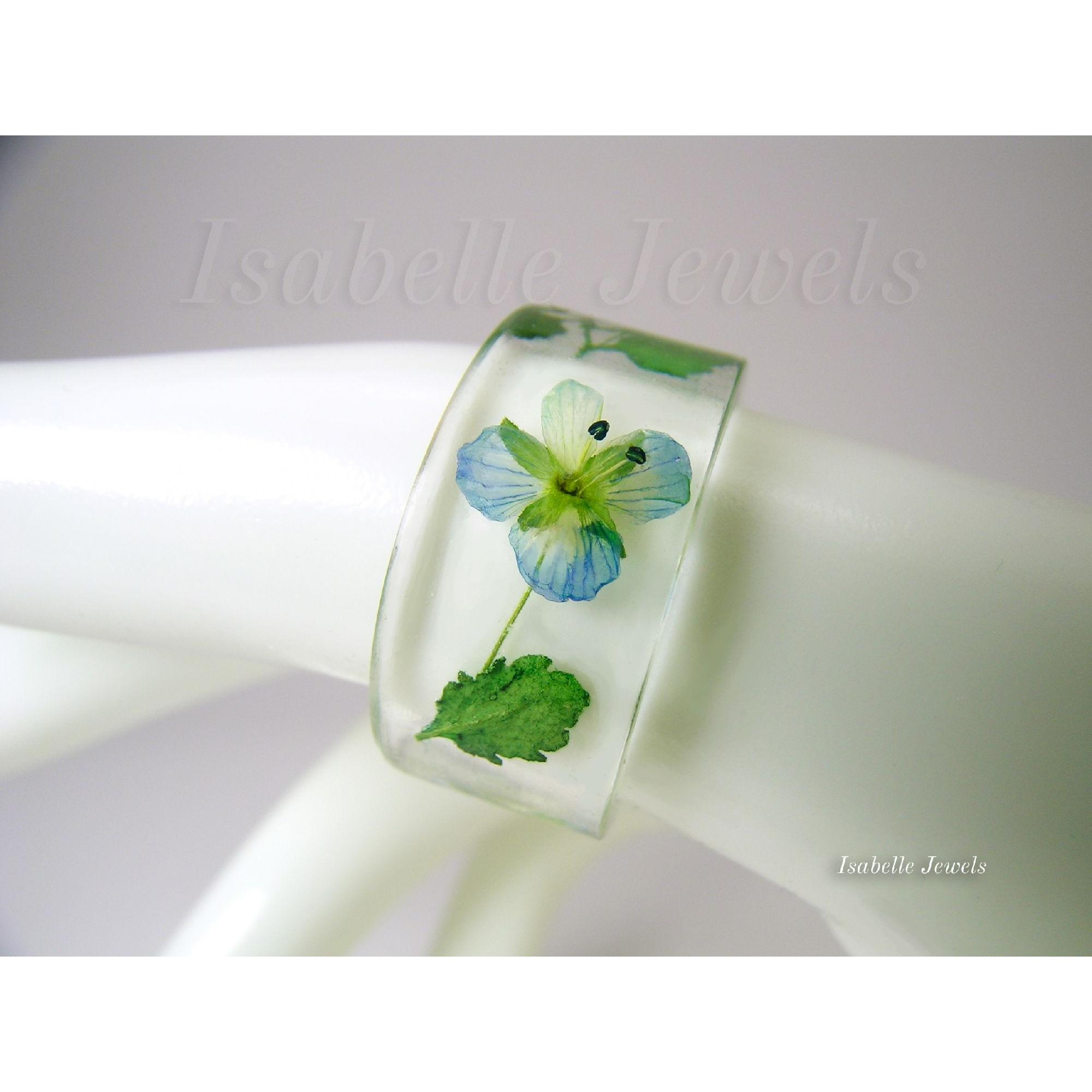 Anello con fiori veri "non ti scordar di me" cristallizzati nella resina. Gioielli artigianali