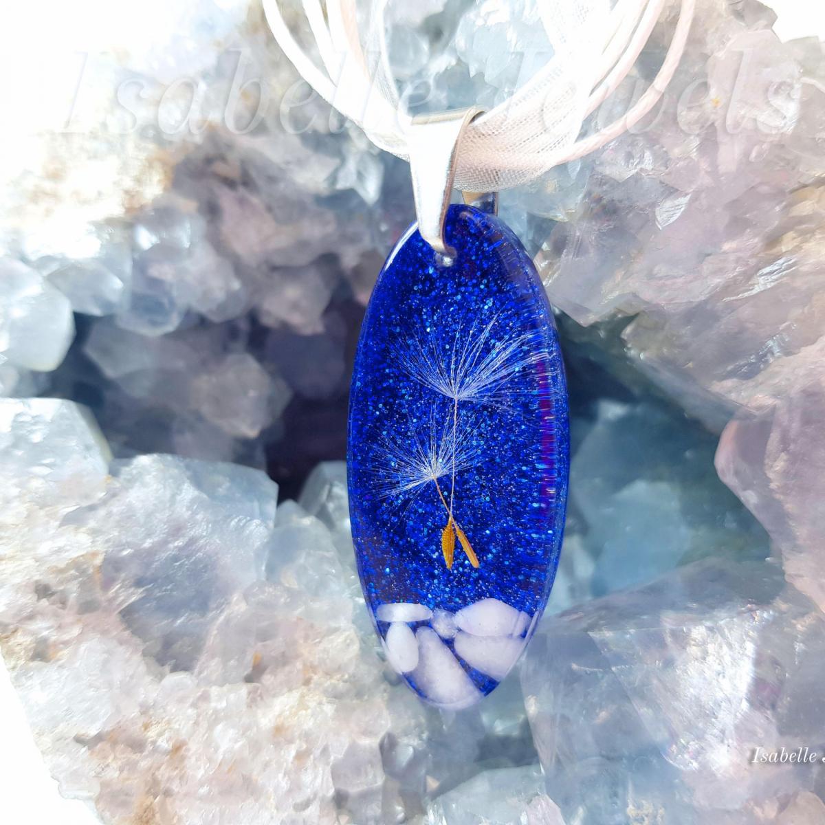 ~ Collana realizzata con semi di tarassaco (soffioni) e sassolini di marmo racchiusi nella resina
