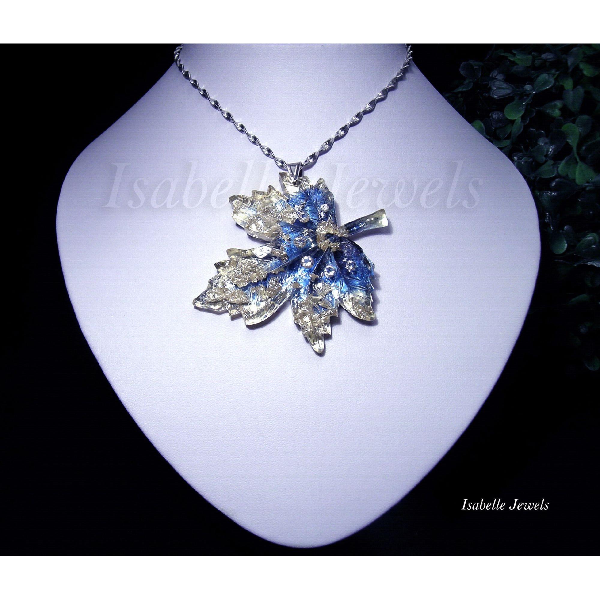 Gioielli artigianali, Collana girocollo donna in argento con ciondolo in resina, zirconi taglio tondo e foglia argento, sfondo in pigmenti blu. Montatura in argento 925. Handmade epoxy resin gemstones, silver leaf pendent, necklace - Gioielli artigianali in resina epossidica .Epoxy Resin Art jewellery - MI TROVI ANCHE SU YouTube : Isabelle Jewels