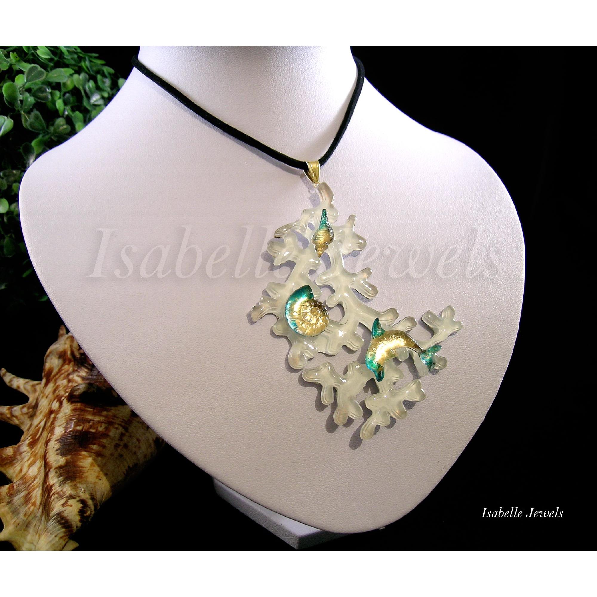 Resina epossidica creazioni artigianali, Collana mare realizzata a mano in resina con foglia oro. Gioielli artigianali in resina epossidica. Handmade epoxy resin jewelry - MI TROVI ANCHE SU YouTube : @isabellejewels
