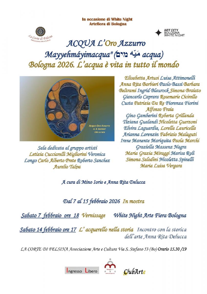 Nella mostra Mayyehmáyimacqua"(??? ????? acqua) Bologna 2026-L’acqua è vita in tuttoil mondo curata dalcritico e storico dell’arte (Catalogo dell’Arte Moderna n. 61 dell’Editoriale Mondadori-CAM 61) prof. Mino Iorio espongono: