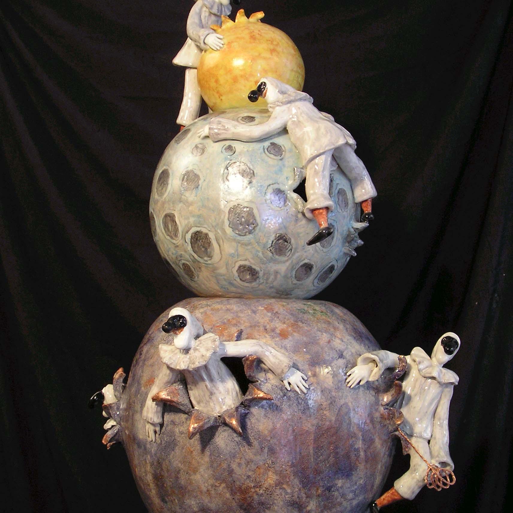 Laura Peluffo nasce ad Albisola Superiore nel 1953. Consegue la maturità artistica presso il liceo artistico A. Martini di Savona allieva degli artisti. Gianmario Pollero, Roberto Bertagnin e Giampaolo Parini, dopodiché frequenta alcuni corsi dell’accademia Ligustica di belle arti a Genova. E inizia a esporre in collettive. Consegue l’abilitazione all’insegnamento dell’educazione artistica con il massimo dei voti, e dirige la sua attenzione al mondo dei bambini in età scolare e in particolare prescolare. La sua curiosità la spinge verso il magico mondo del teatro e segue parecchi corsi e stage di ottimo livello tra i quali due anni col 2TS (teatro totale sperimentale di Savona) con la guida di Nat Russo e in seguito tre anni di corso con la guida del regista Giorgio Gallione, ora direttore artistico del teatro Dell’Archivolto a Genova, di mimo con Jves Le Breton, e di lavoro sulla maschera con Enrico Bonavera del Piccolo Teatro di Milano. Comincia a recitare e a svolgere contemporaneamente attività di truccatrice, costumista e scenografa e in quel campo dirige la sua attività artistica. S’interessa anche di restauro e nel frattempo continua ad aggiornarsi sulle tecniche di scultura ceramica. Nel 2003 apre il suo studio” atelier gioco scenico” e si dedica pressoché totalmente all’attività’ artistica, fondando nel 2007 anche l’associazione culturale O.N.L.U.S. “atelier giocoscenico” per la promozione e la divulgazione delle arti, della quale è presidente. Nel 2005 frequenta un corso d’incisione reinterpretando la tecnica con personalità. Nel 2006 si accosta alla tecnica RAKU con ottimi risultati creando originali sculture gioiello. Nel 2009 segue un corso per la produzione di cartoni animati e collabora alla realizzazione del cartone animato “ LA PORTA ANIMATA “ sotto la guida di Loris Gualdi e Marina La Torre (produzione del Museo Luzzati – Genova.) Sempre nel 2009 segue un corso di sagome di legno con la tecnica Luzzati. Le sue opere portano il segno delle sue esperienze passate e son teatrali e giocose (teatranti e pulcinella) o classiche e retrò (AQUA e le mitiche Agane) e i gioielli scultura in tecnica raku. Espone in permanenza nel suo studio-laboratorio “ atelier gioco scenico” via carissimo e crotti 29r 17100 Savona. Cell 3398129982 laurapelu@libero.it http://blog.libero.it/laurapeluffo/