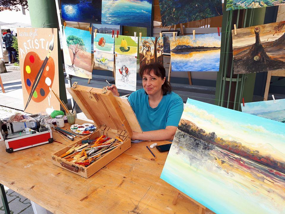 Due giugno a Vergiate, artisti in piazza per la festa della Repubblica, con le loro opere o, nel mio caso, dipingendo.