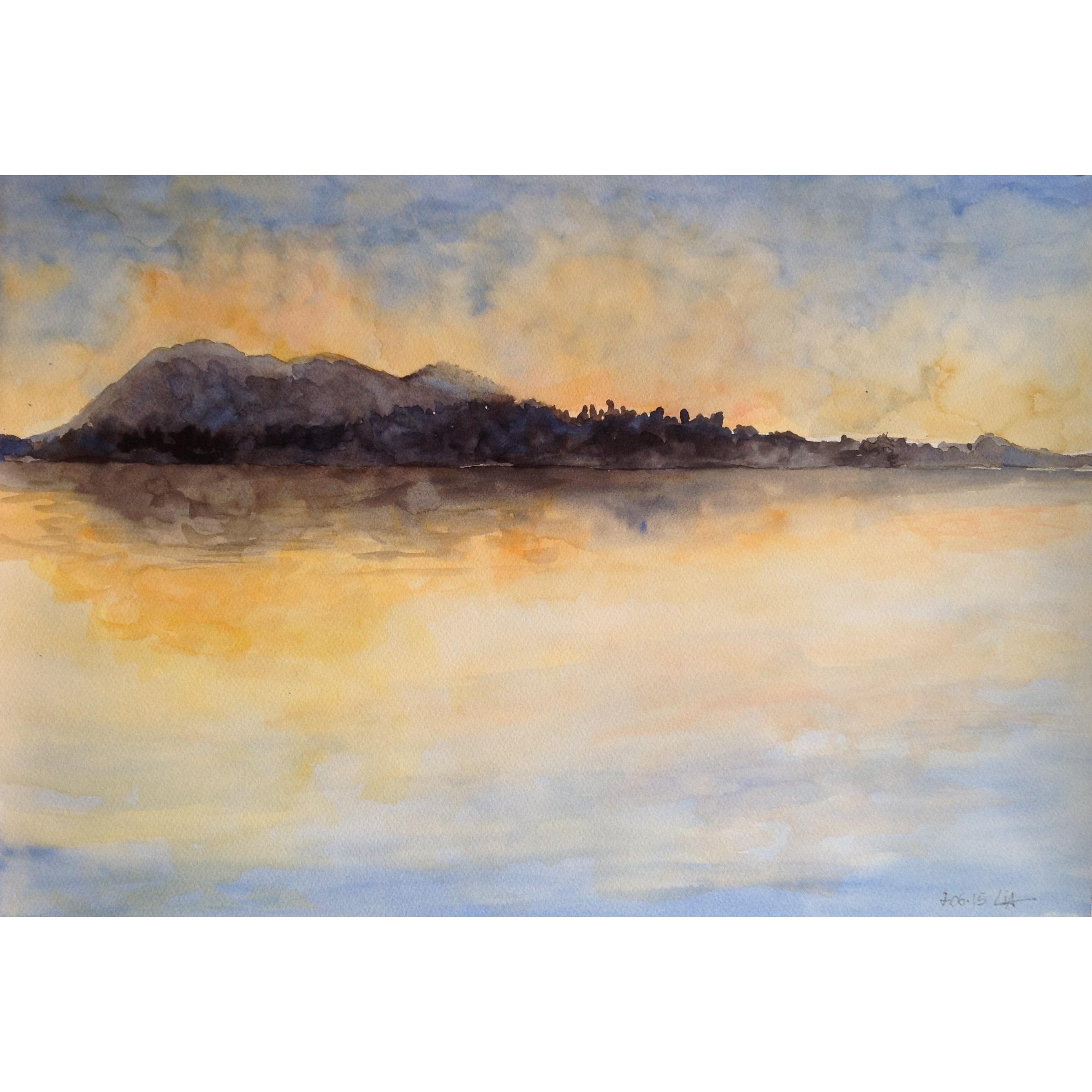 Inverno sul Lago di Monate, tramonto, vista sulla sponda di Osmate.