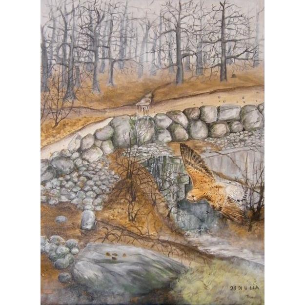 Tornare a casa, su un sentiero tra i faggi, il rumore dell'acqua, il volo di un gheppio. Inverno.