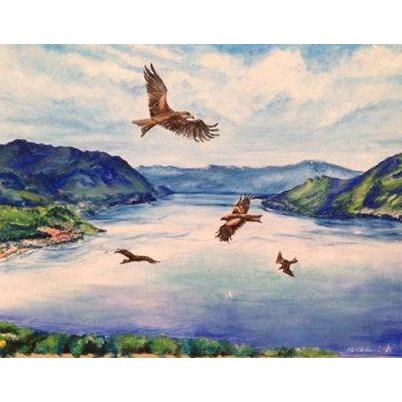La vista dal belvedere Mandelli di Agra: tutto il basso Lago Maggiore. I nibbi bruni si librano nell'aria.
