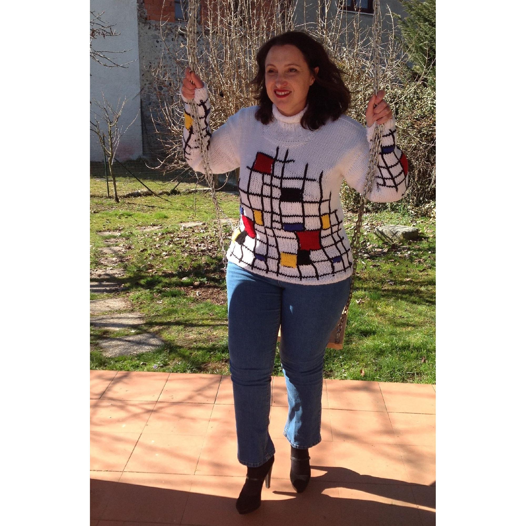 Maglia realizzata ispirandosi al design di Mondrian, il pattern per la sua realizzazione è disponibile su Ravelry.