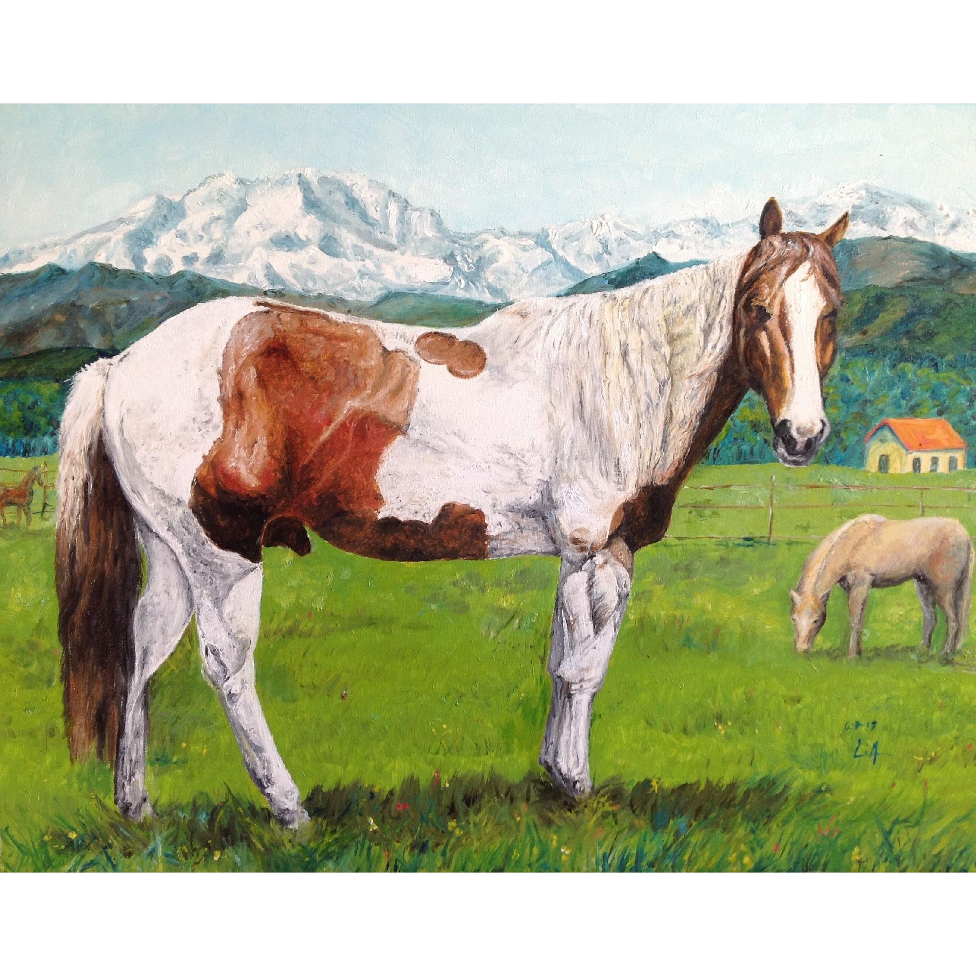 Un amico molto speciale, un animale molto amato, in relax, in un contesto naturale molto distensivo. Di sfondo il Monte Rosa e le Alpi.