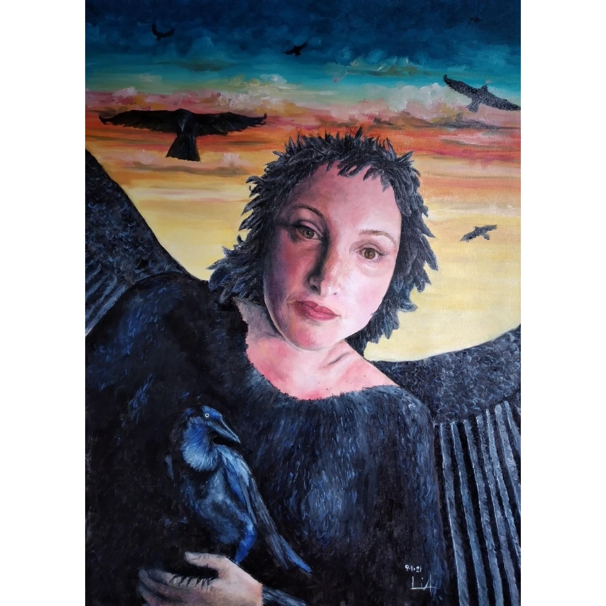 Un autoritratto da una foto scattata in un momento di sconforto, in cui ho trasfuso tutti i sentimenti negativi accumulati in questi ultimi due anni: rabbia, disappunto, paura, impotenza. Un gesto catartico, ma anche di speranza.