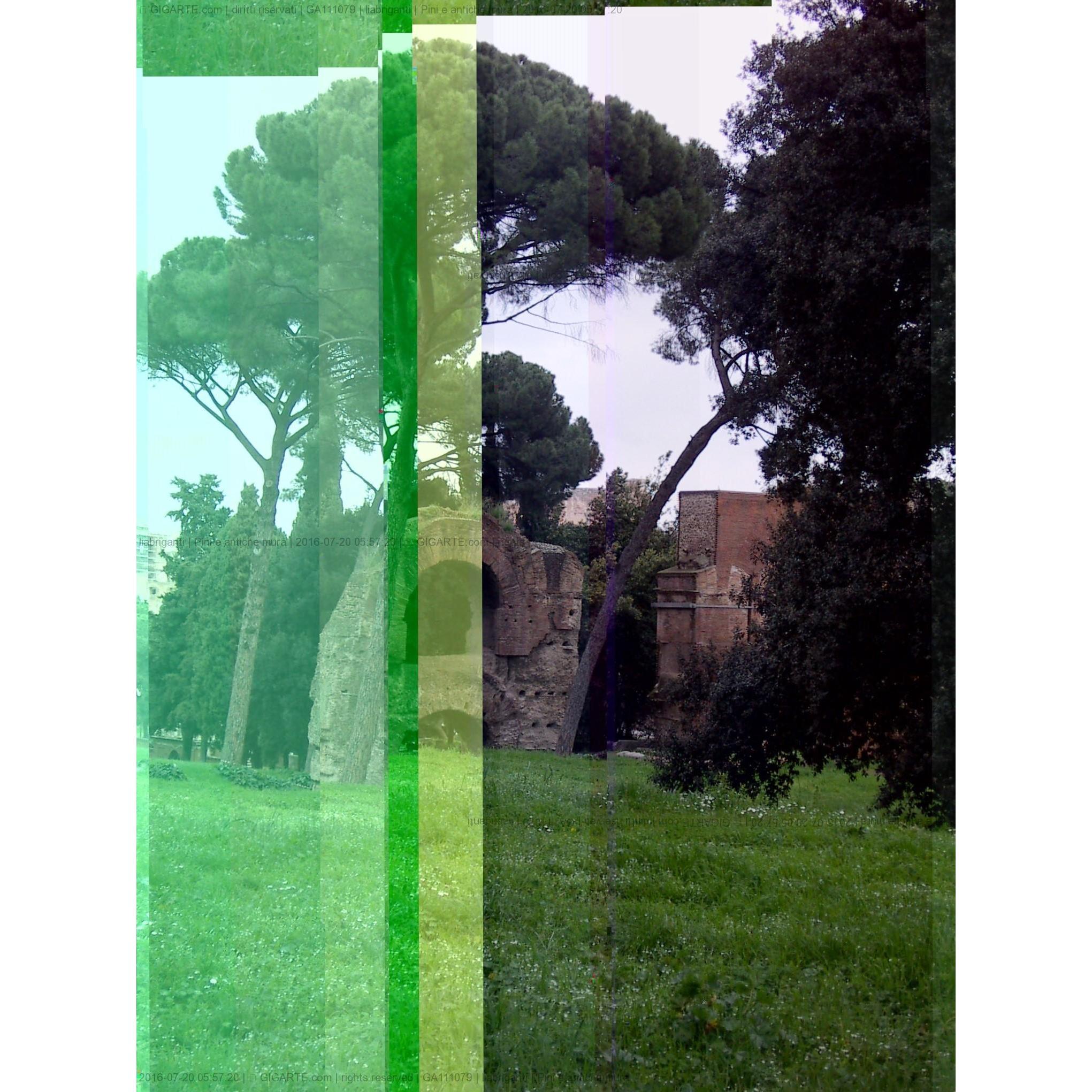 Romantico idillio di antiche mura e pini vetusti sul Palatino nel verde neopop di una Primavera variabile.