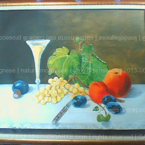 natura morta con calice di prosecco
