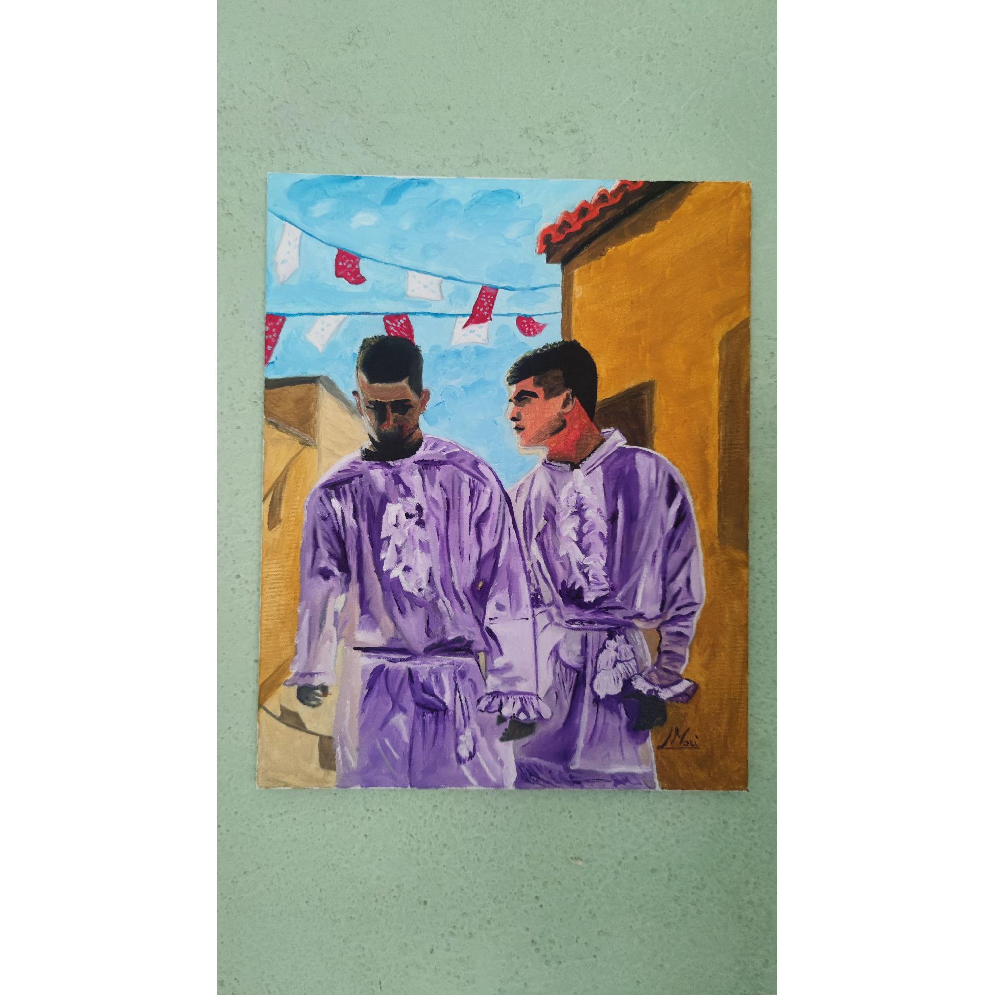 L'opera rappresenta due ragazzi con l'abito della confraternita degli scalzi di Cabras, in Sardegna