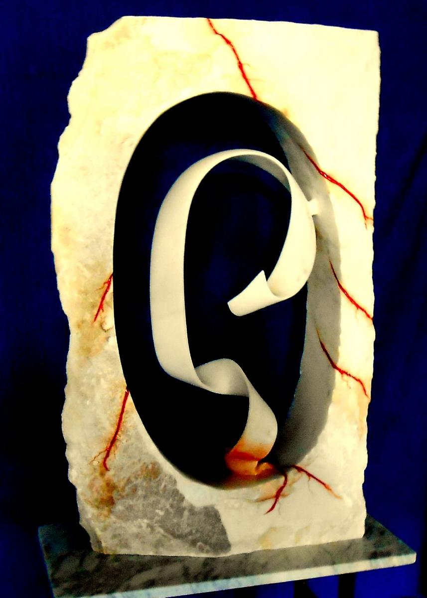 ,,marmo bianco statuario monolitico,h cm1000 l cm600 inserti rossi in soft glass