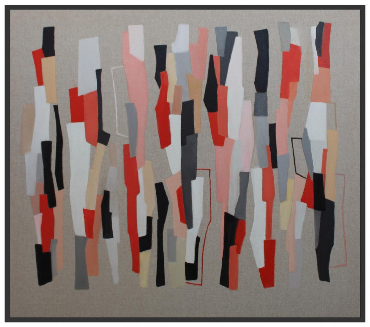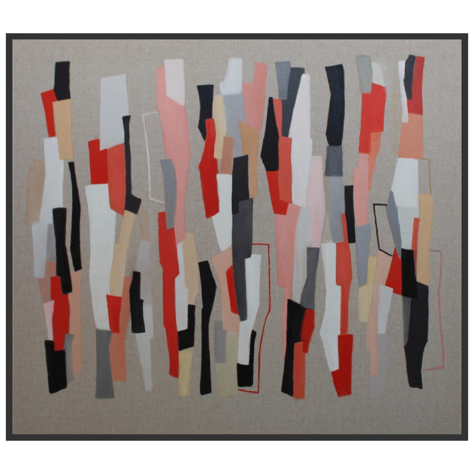 L'opera è composta da una serie di forme verticali colorate che si muovono su uno sfondo chiaro e neutro. Le forme appaiono libere e irregolari, creando un senso di movimento e leggerezza. Ogni colore sembra avere una propria voce, pur dialogando con gli altri all'interno della composizione.