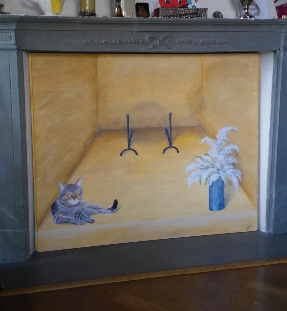 trompe l'oeil chiusura caminetto