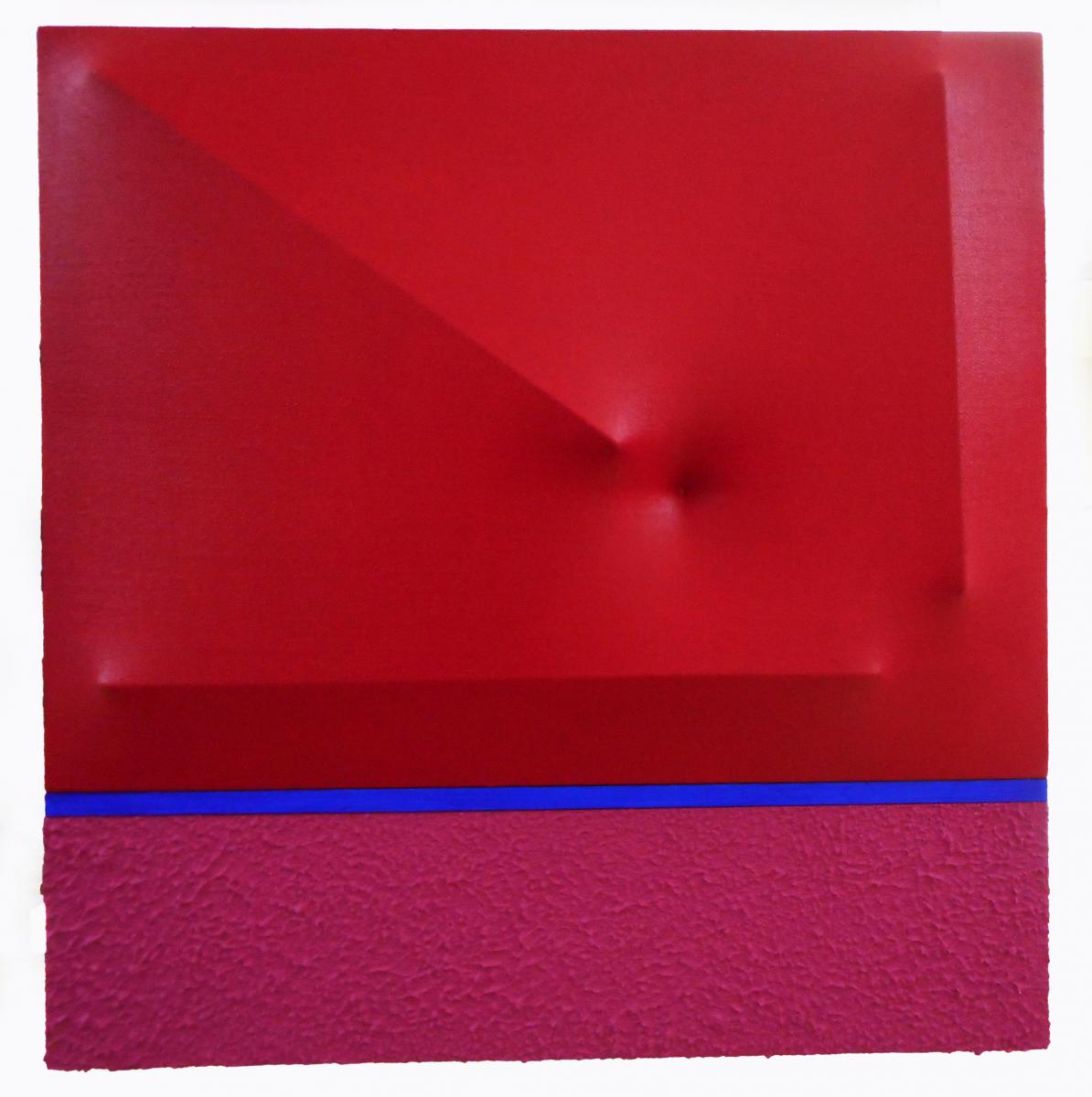 estroflessione rossa-geometrie su spazio rosso con linea blu