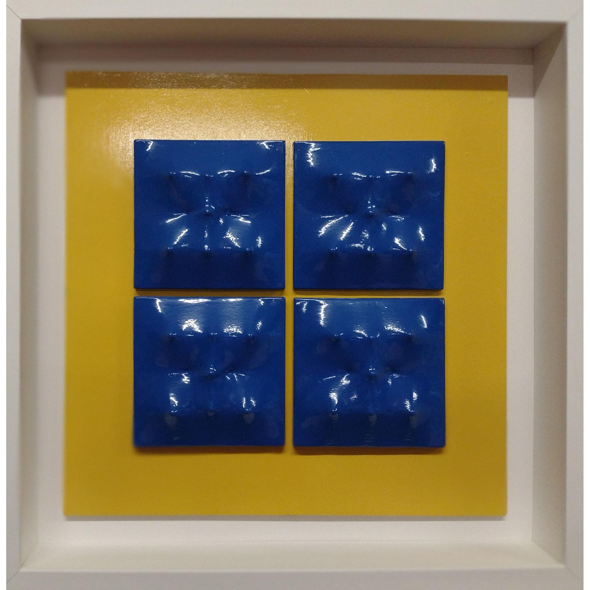 - materiale: 4 elementi in resina e polvere di ceramica blu su tavola di legno giallo
