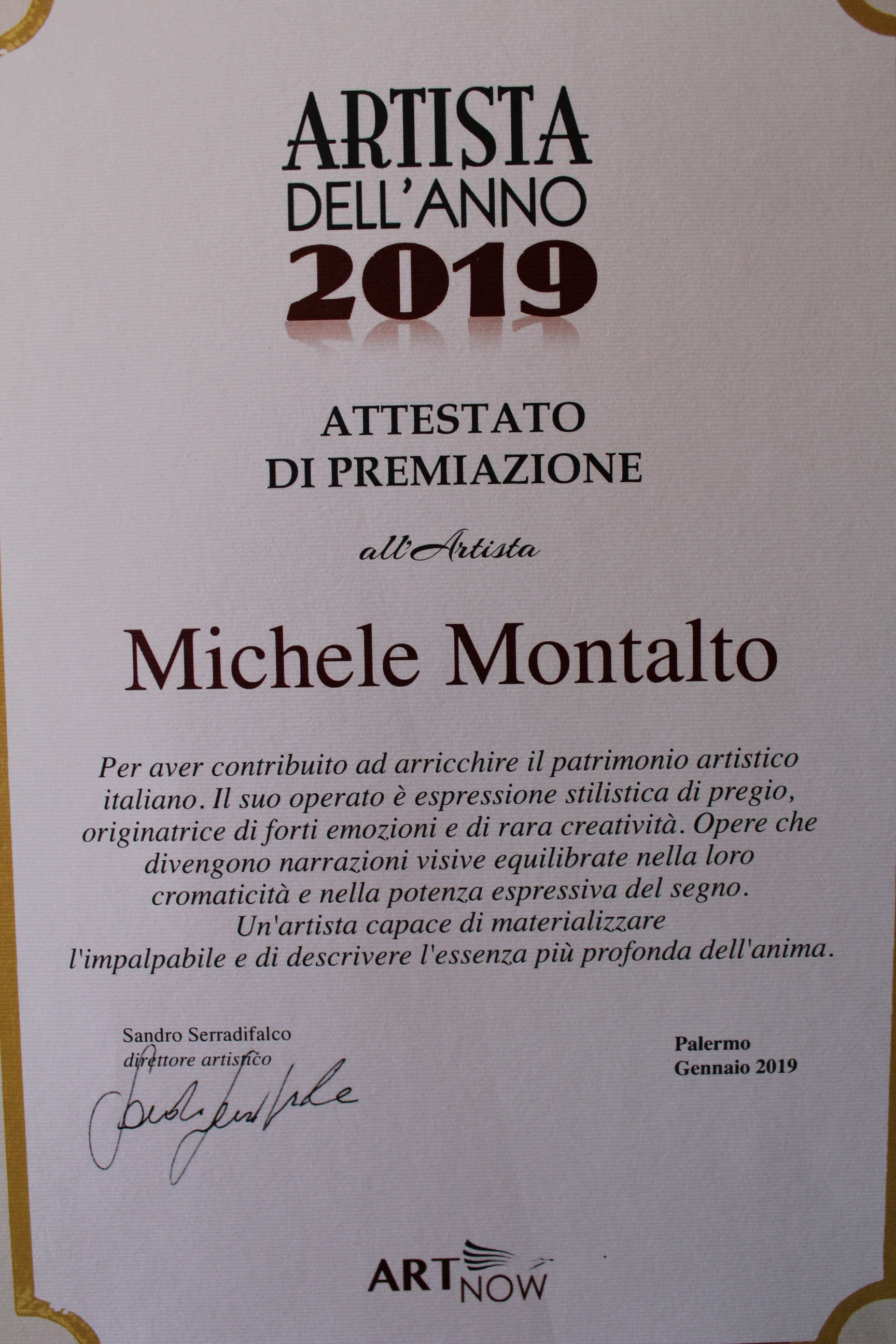 L’Artista sabato 19 gennaio 2019 “, invitato alla cerimonia di assegnazione al Premio Artista dell’anno 2019 riceverà il prestigioso titolo da parte dell’Associazione Socio Culturale presieduto dal noto critico d’Arte, Sandro Serradifalco EA Editore. Interverranno : il critico d’arte Barbara Romeo, il collaboratore editoriale Giacomo Cangialosi, il funzionario direttivo Assessorato alla Cultura de Comune di Monreale ( Palermo), Salvatore Ganci, alla cerimonia sarà presente anche l’editore Pietro Serradifalco.