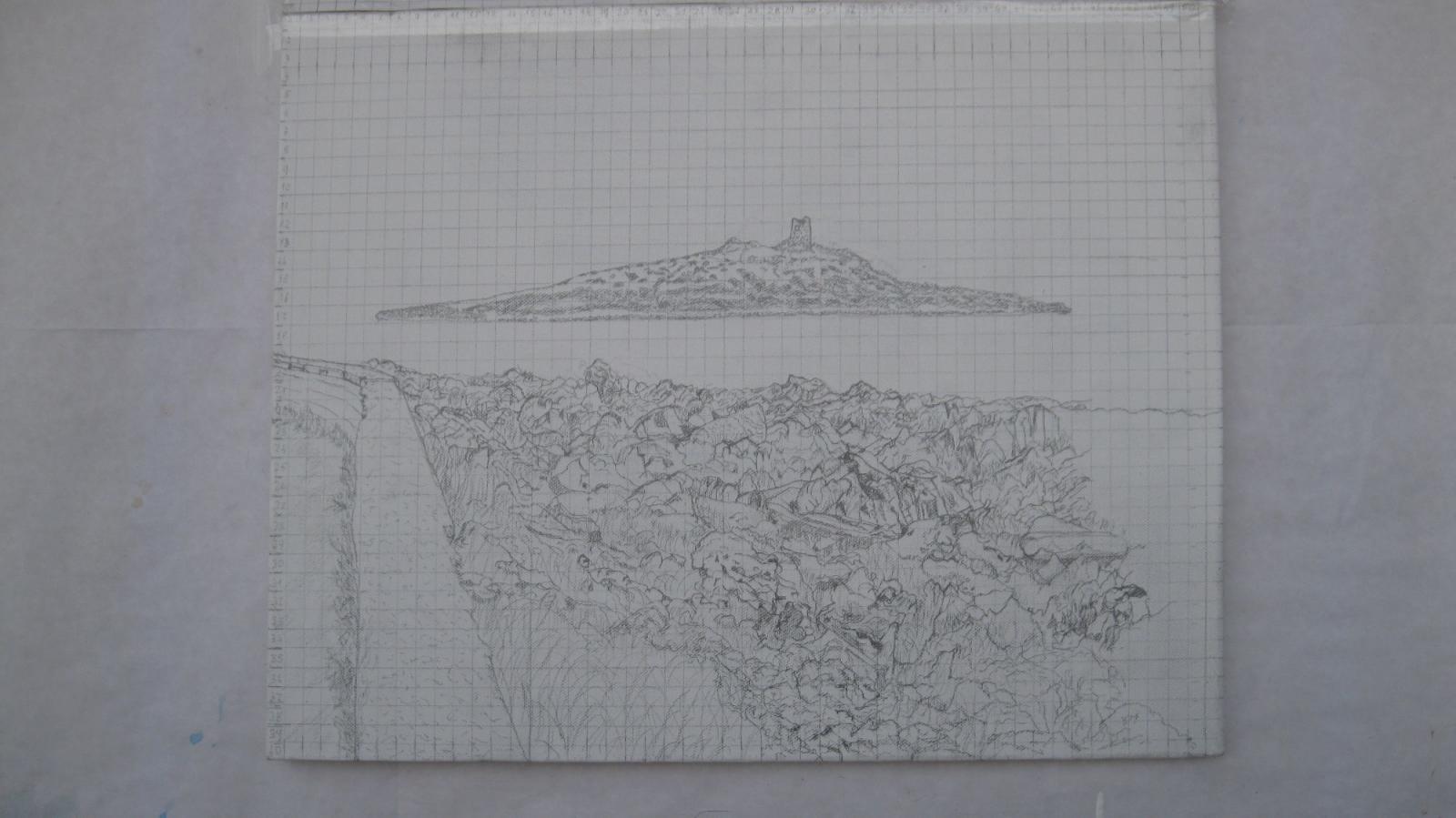 45)- 2 - In questa vi mostro la foto ingrandita in alto e sotto di essa alle stesse dimenzioni una tela su cui disegnerò l'Isola delle Femmine.