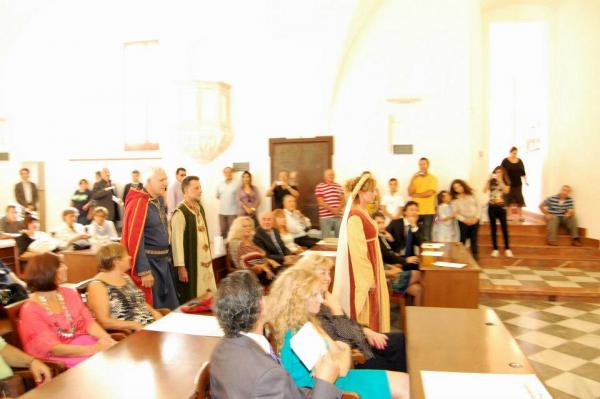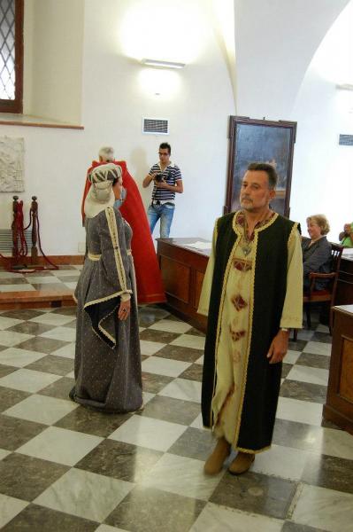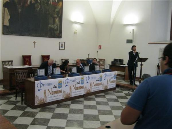 40 - Un grande salone quello Consiliare dove il Comune di Monreale ha messo a disposizione per la premiazione e la consegna delle targhe in occasione dell'Inaugurazione della Mostra " Premio dei Normanni ". Prima della premiazione la spiegazione e parte della storia normanna veniva accompagnata dai personaggi che interpetravano i nobili accompagnati dagli alfieri, un vero perfetto racconto che coinvolgeva i presenti rifacendo rivivere le tragiche avventure dei tempi Normanni. La premiazione con delle targhe nominative personalizzate venivano date prima ai componenti eccellenti, Sindaco, gli assessori al comune e anche al critico di OVERART, in seguito ogni artista che la riceveva esprimeva il proprio compiacimento.