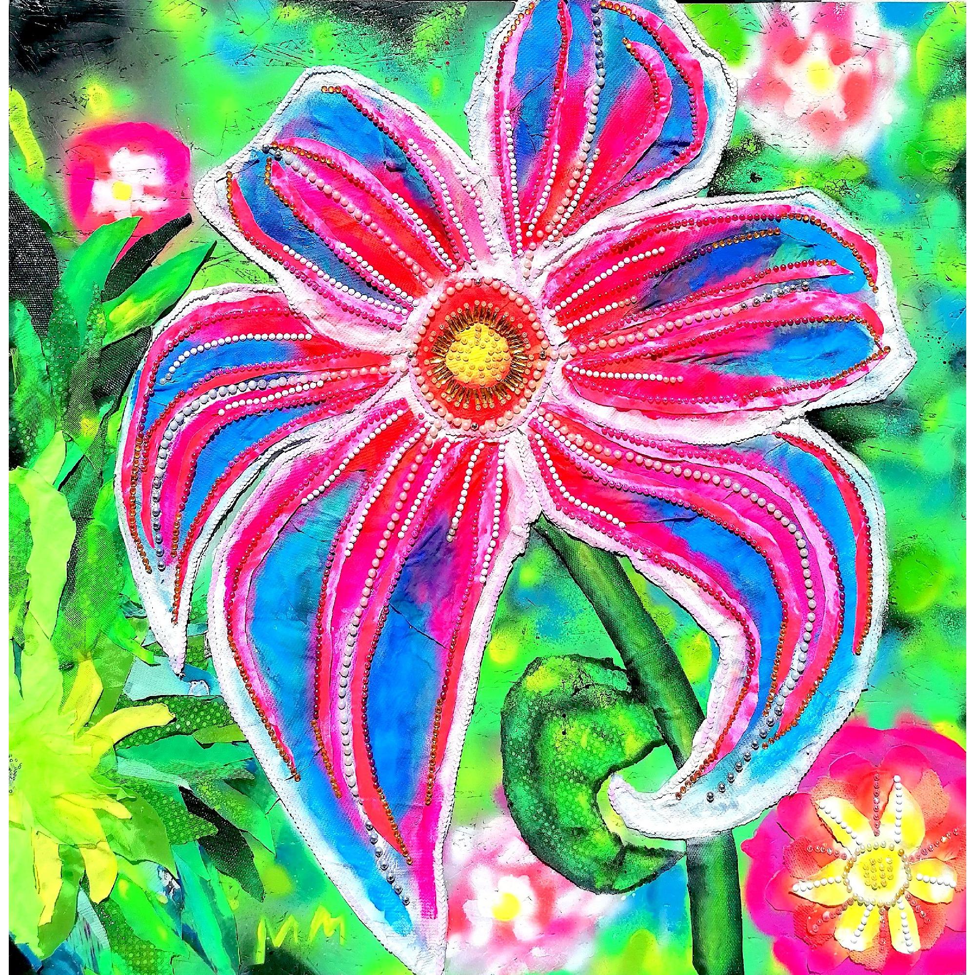 Nella mia opera, ho fuso acrilici, collage e spray per catturare l'energia vibrante della natura. Ho voluto rappresentare la bellezza e il vigore dei fiori, usando colori audaci e forme espressive. Il gioco di texture e la vivacità cromatica portano una freschezza contemporanea, invitando alla riflessione sulla crescita e il rinnovamento, irradiando gioia, donando un tocco di vitalità e ispirazione quotidiana.Informazioni generali