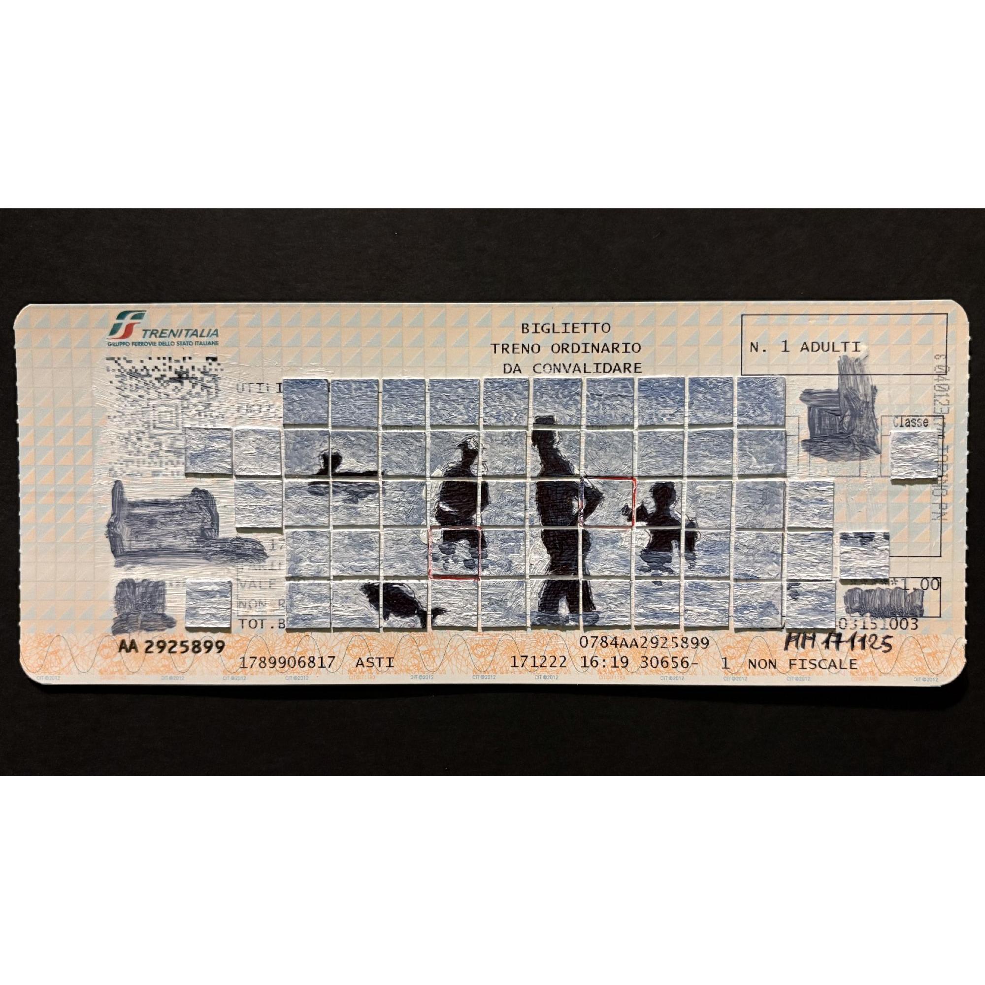 Penna, tempera e collage, Ticket ferroviario, 2025