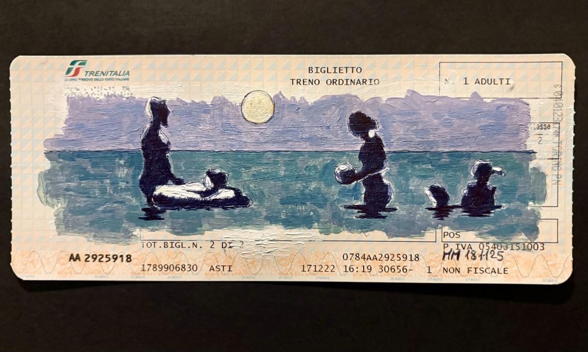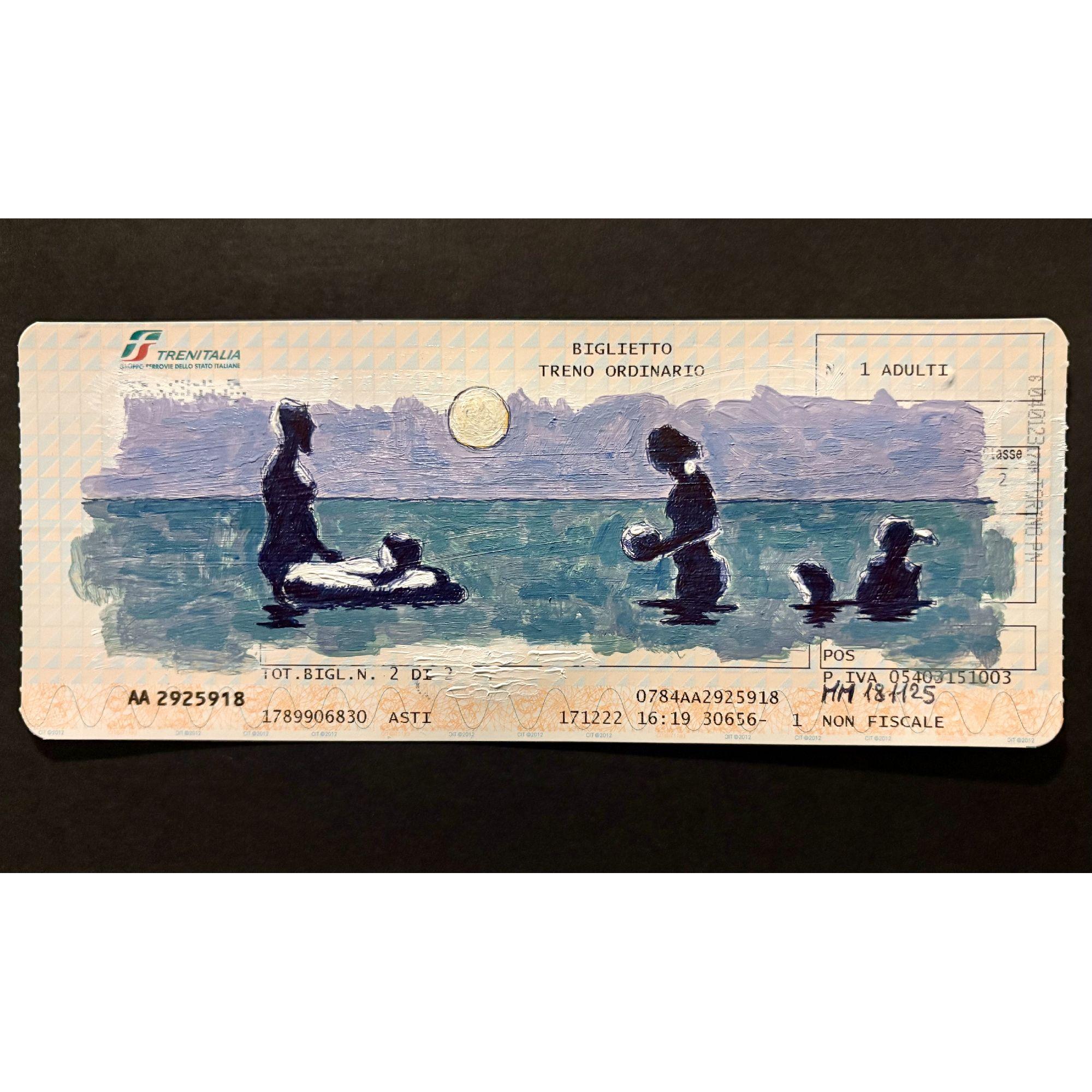 Penna, tempera e collage, Ticket ferroviario, 2025