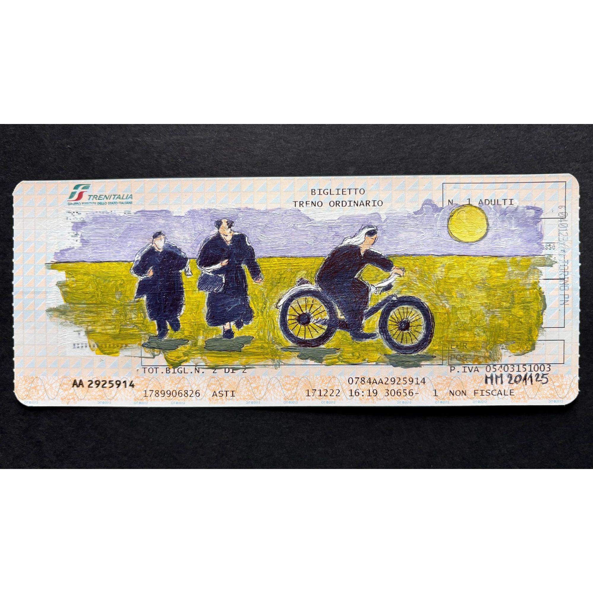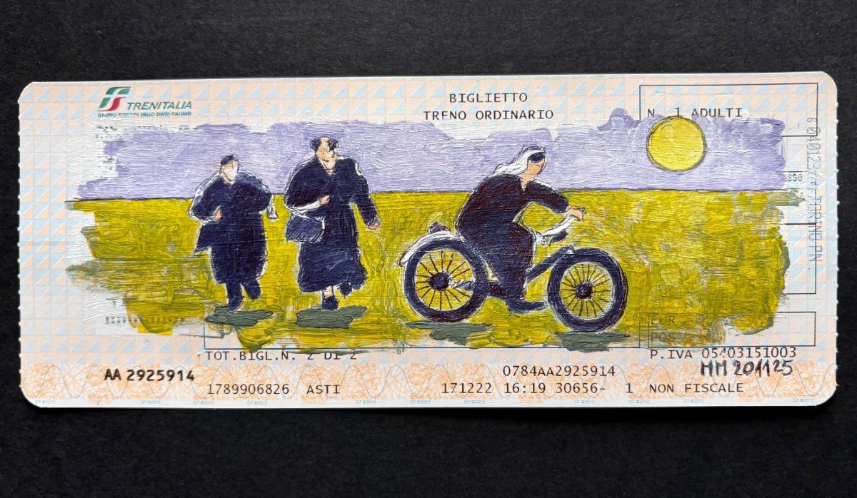Penna biro e colore tempera, Ticket ferroviario, 2025