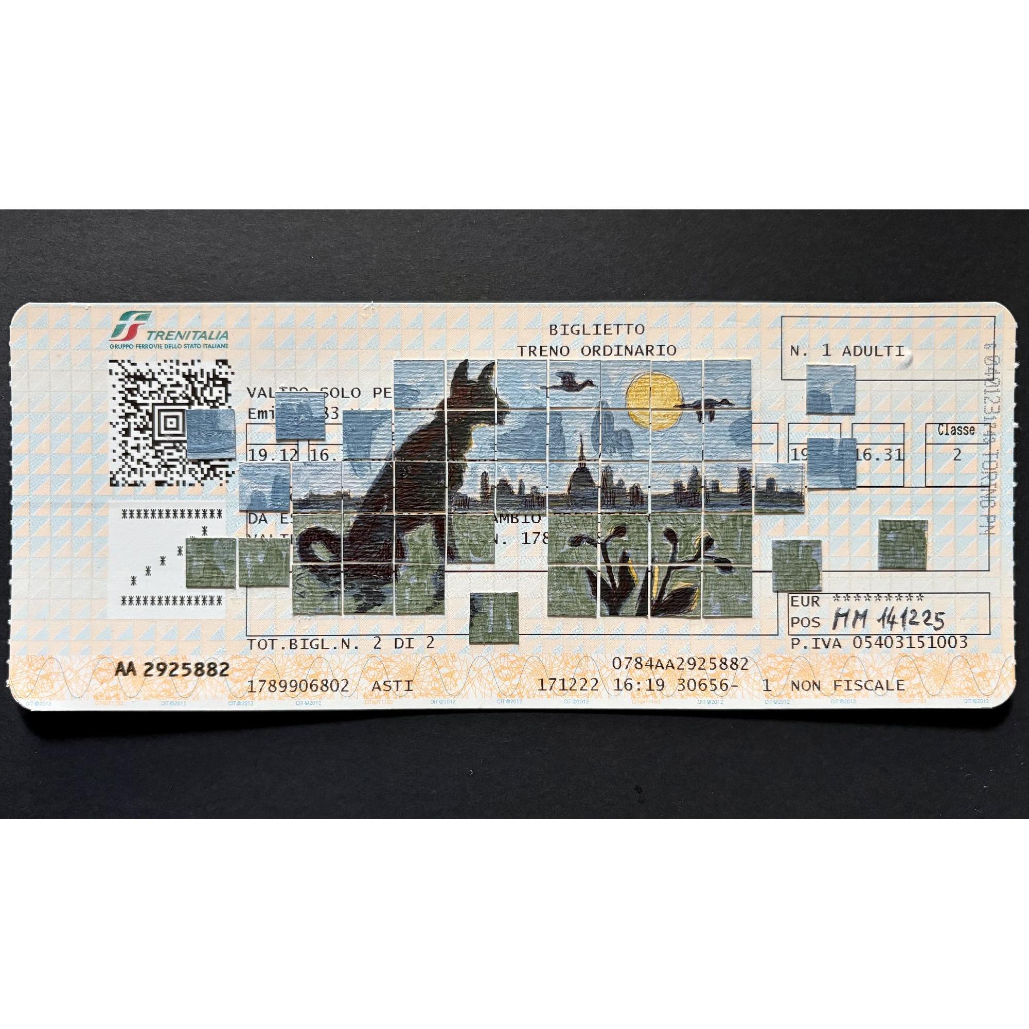 Penna, tempera e collage, Ticket ferroviario, 2025
